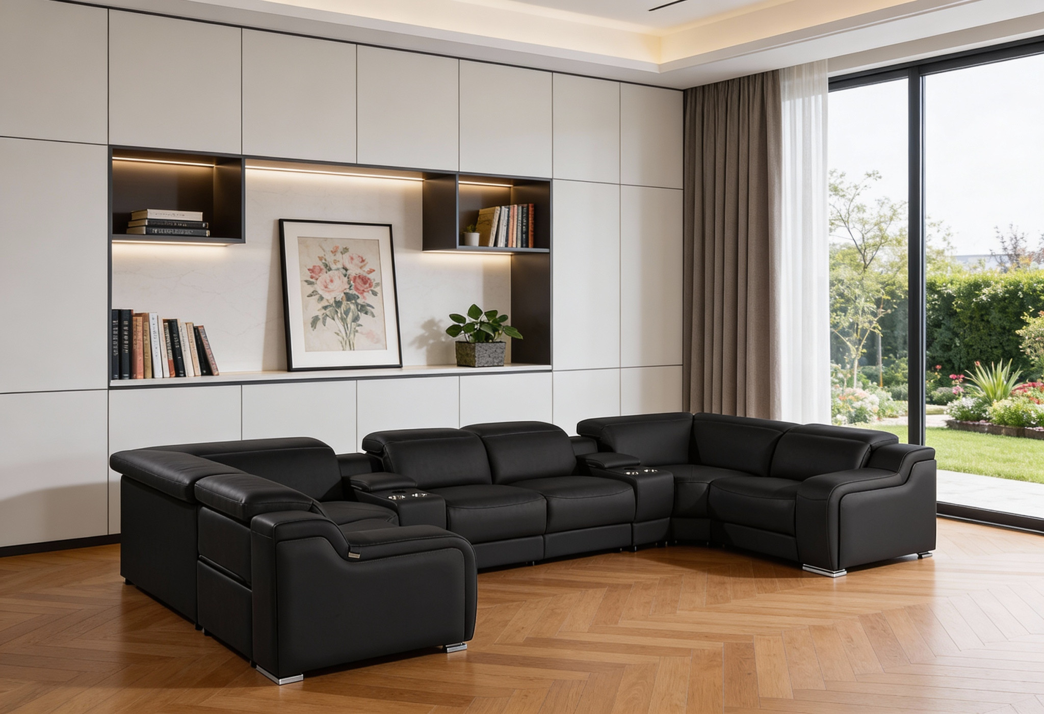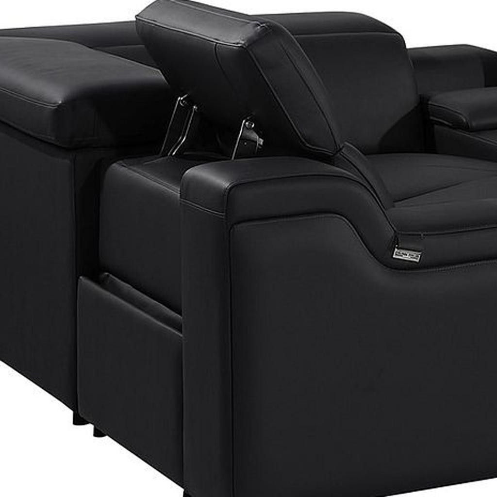 black italian leather power reclining, italian leather power reclining shaped, leather power reclining shaped piece, shaped piece corner sectional console, reclining shaped piece corner sectional |