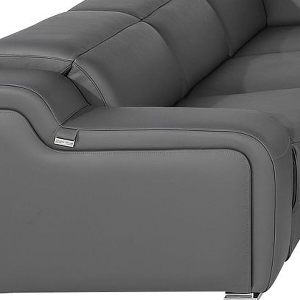 gray italian leather power reclining, italian leather power reclining shaped, leather power reclining shaped piece, shaped piece corner sectional console, reclining shaped piece corner sectional |