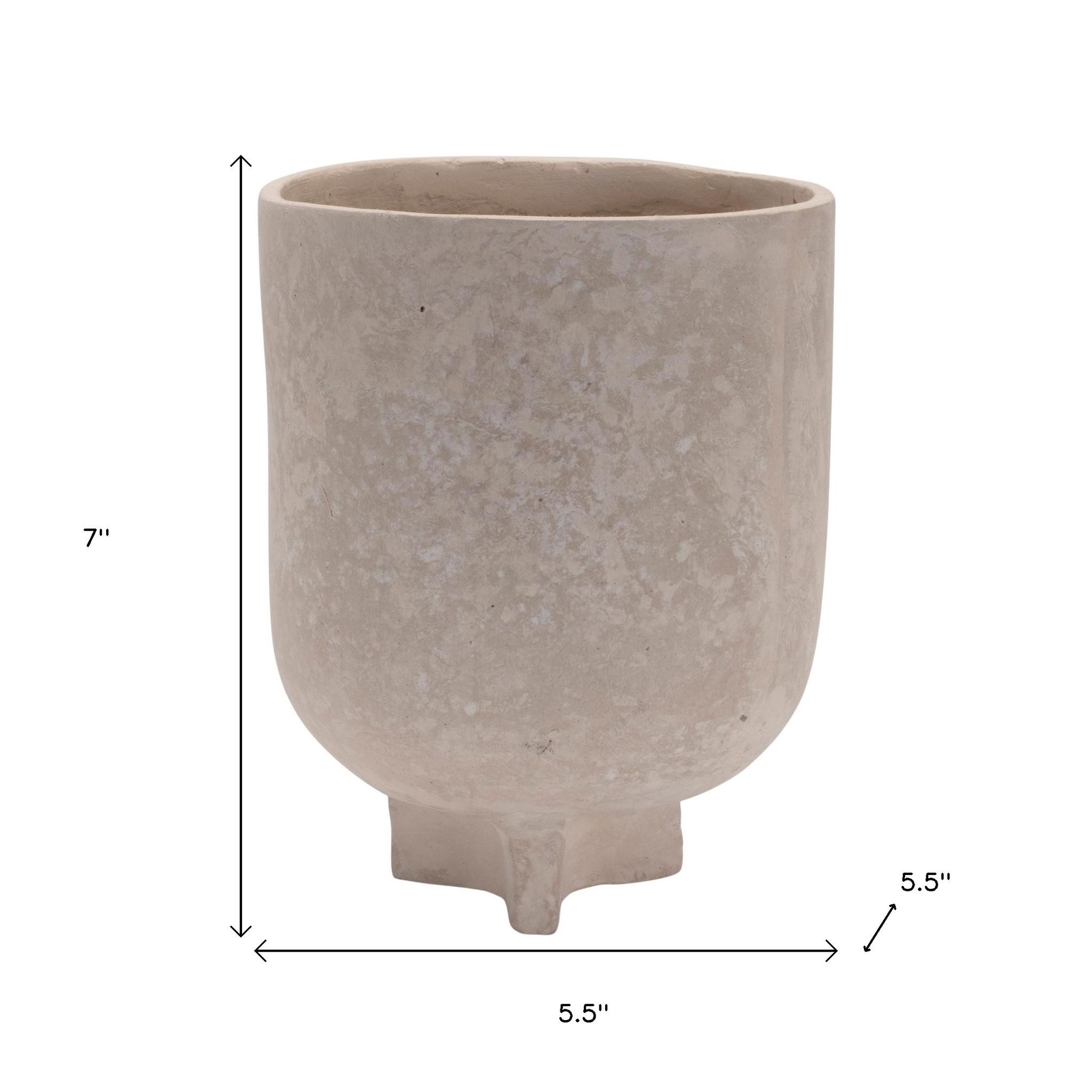 Get ready to accent your space in style with this 7-inch beige recycled paper urn table vase. This beautifully crafted table vase combines functionality with a chic design, making it a perfect addition to any decor. The footed urn shape adds a classic touch, enhancing the elegance of your floral arrangements. Made from environmentally friendly recycled paper, it reflects a commitment to sustainability. Its artisanal style, texture, and neutral beige color effortlessly complements a variety of interior styles, from modern to rustic. This versatile piece can be used alone or as part of a larger centerpiece, bringing warmth and charm to your home ambiance. 7.00-inch h x 5.50-inch w x 5.50-inch d.