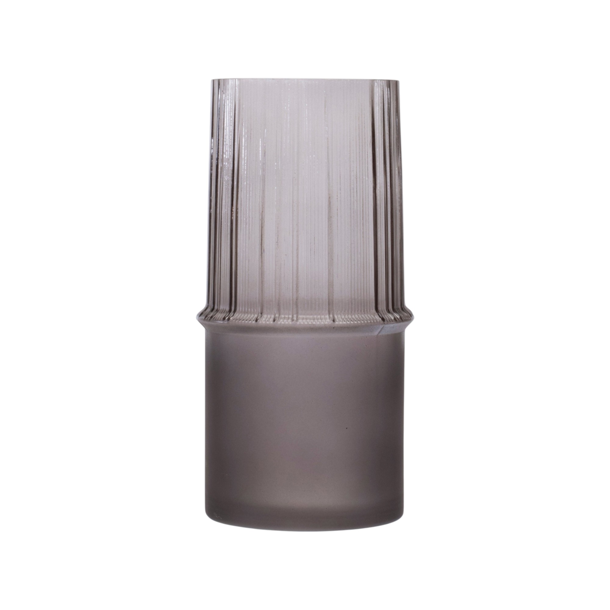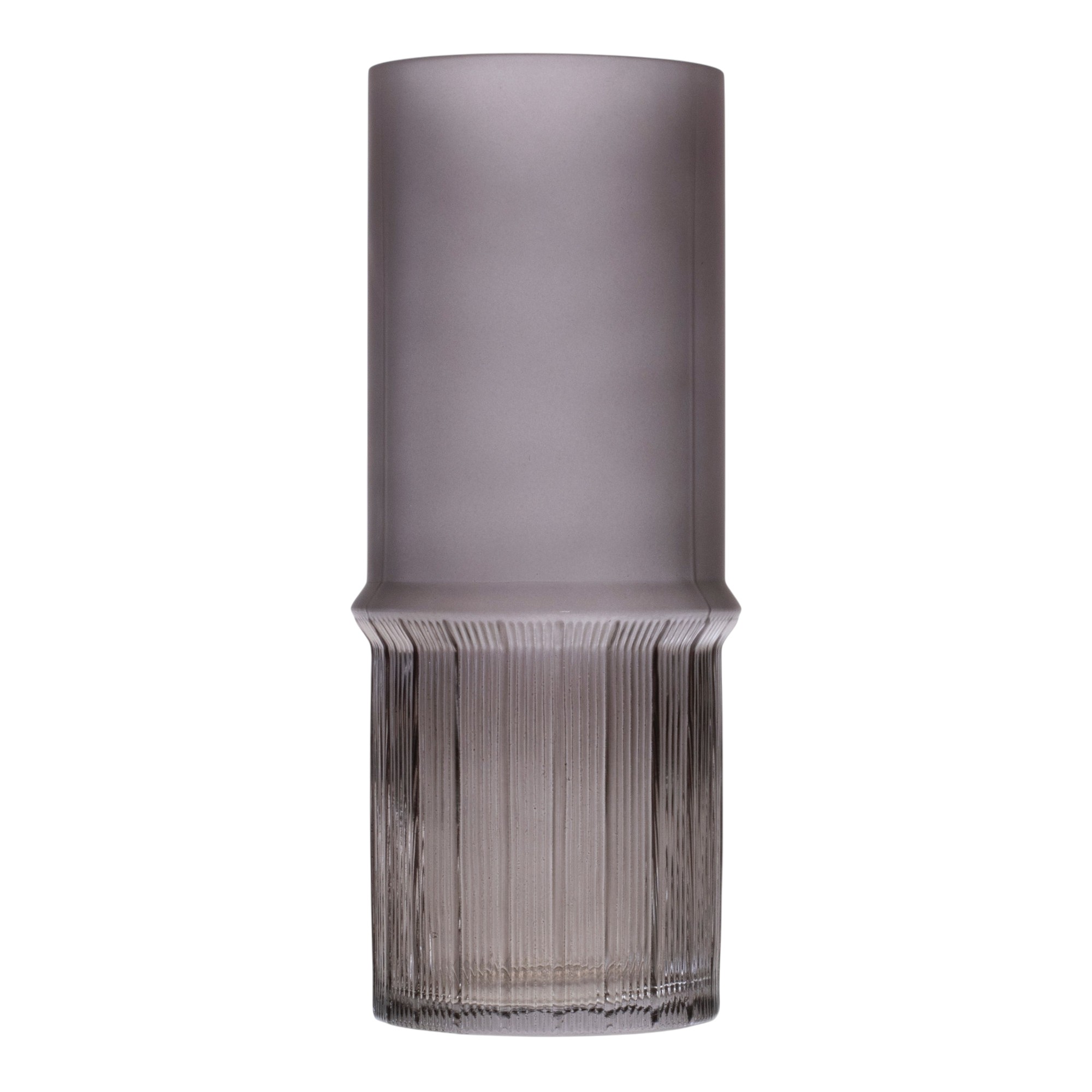 This set of two gray glass cylinder table vases is the perfect accent for your living room, bedroom, dining room, or lounge. Crafted from high-quality smoky gray translucent colored glass, these vases offer a sleek and modern design that complements any decor style. Each cylinder features a mix of smooth and textural finish in a reverse design that enhances their elegant appearance while providing a sturdy base for floral arrangements or decorative fillers. Their versatile shape allows for creative styling options, whether displayed together or separately, making them an ideal choice for any space in your home. Enjoy the beauty of fresh flowers or unique decor elements with this stunning vase set. 8.50-inch h x 4.25-inch w x 4.25-inch d.