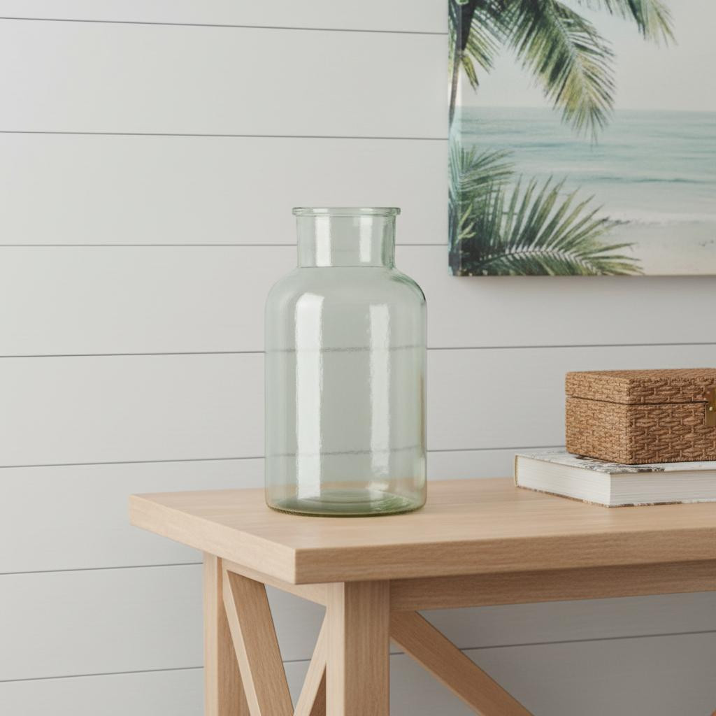 Get ready to accent your space in style with this 10-inch green glass round table vase. This elegant table vase brings a touch of sophistication to any room it graces. Crafted from high-quality translucent colored glass, its sleek design beautifully reflects light, creating a captivating display. The cylindrical shape adds a soft and inviting element, making it ideal for a variety of floral arrangements or as a standalone decorative piece. Its vibrant green hue adds a refreshing pop of color, enhancing your home decor effortlessly. Perfect for dining tables, side tables, or as a centerpiece, it elevates the ambiance of your living area with ease. 10.25-inch h x 5.50-inch w x 5.50-inch d.