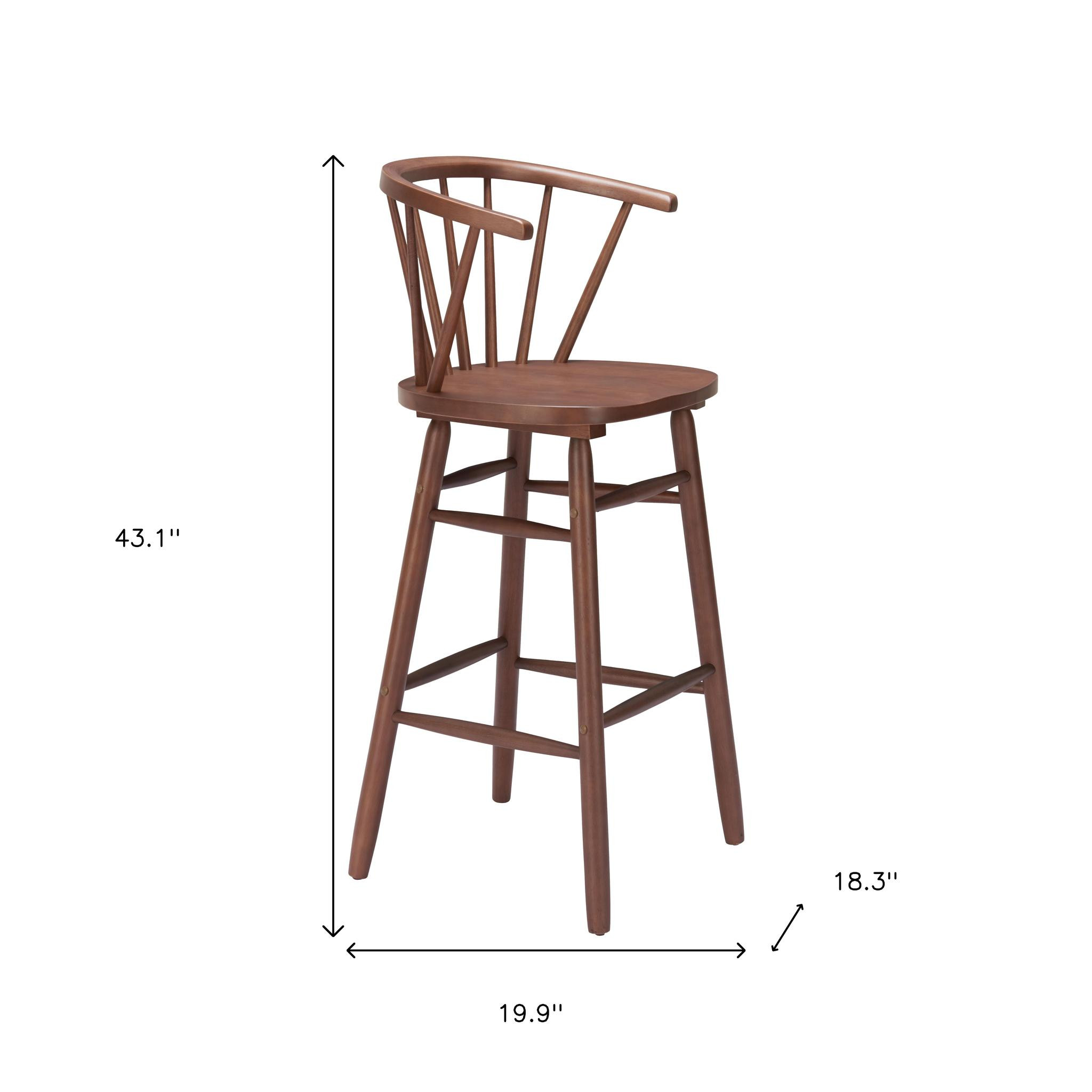 With this set of two walnut solid manufactured wood and wood low back bar chairs you can add design and extra seating to your space. A solid walnut solid and manufactured wood frame is finished off with a matching walnut solid and manufactured wood seat, giving this chair a chic monotone look. Designed with armrests for your comfort, this chair also features a footrest for comfort and convenience. A low back mixed with a bucket shaped seat design makes this chair both comfortable and fashionable. 43.10-inch h x 19.90-inch w x 18.30-inch d.