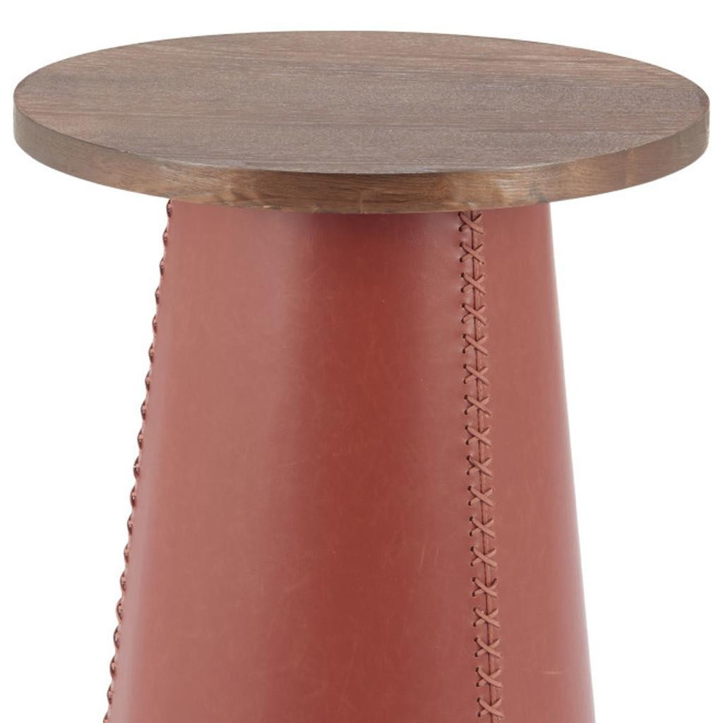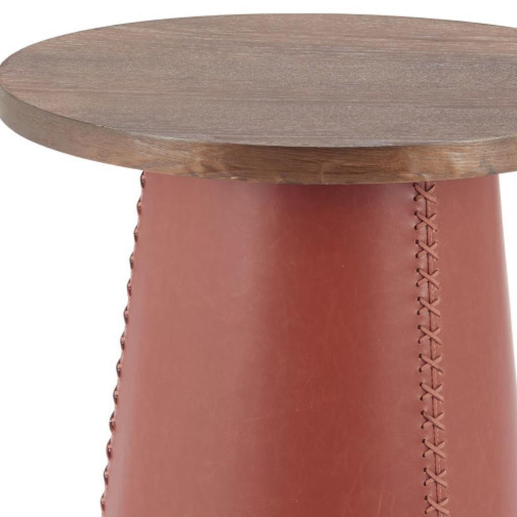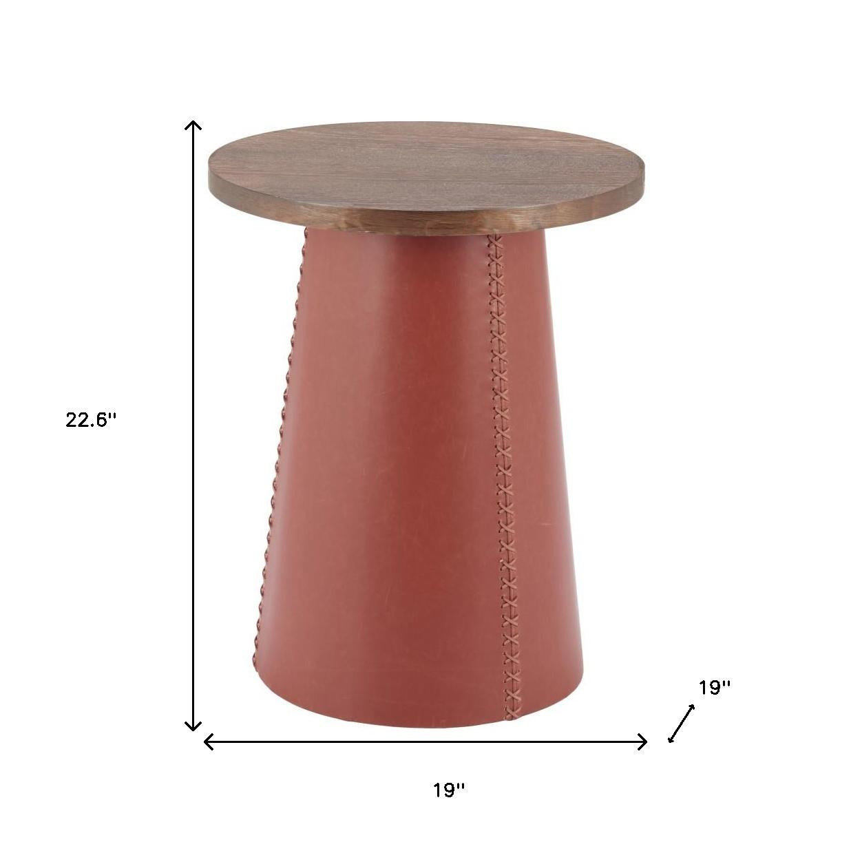 Show off your exquisite taste with this 23-inch brown wood and faux leather round pedestal end table. A stylish and unique brown faux leather pedestal base is finished off with a coordinating brown manufactured wood top surface, giving this table a chic look. Side tables are a great way to flank your sofa, use as an accent next to your favorite chair, or can even be used bedside. You can match it with other pieces to get the ideal look for your place. 22.60-inch h x 19.00-inch w x 19.00-inch d.