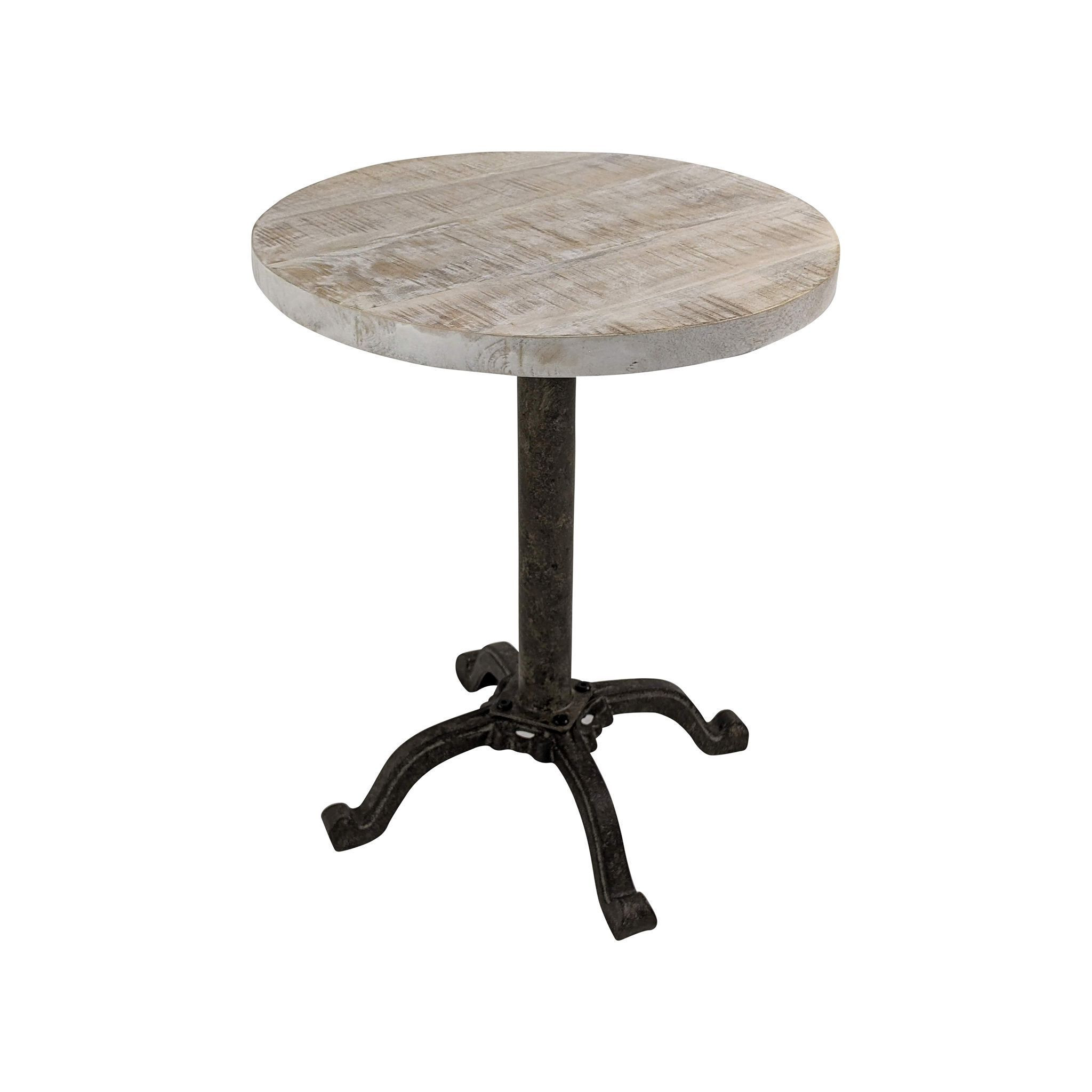 Show off your exquisite taste with this 22-inch natural and black solid wood and metal height adjustable round pedestal end table. A black metal frame is finished off with a natural solid wood top that is the epitome of quality construction and design. A great accent on either side of the sofa or bed, this adorable end or side table is just what you need. This versatile table is a great accent for most any room. 22-inch h x 18-inch w x 18-inch d.