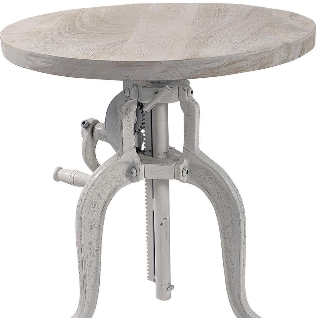 height adjustable round end table, adjustable round end table, solid wood iron height adjustable, white solid wood iron height, 19" white solid wood iron |