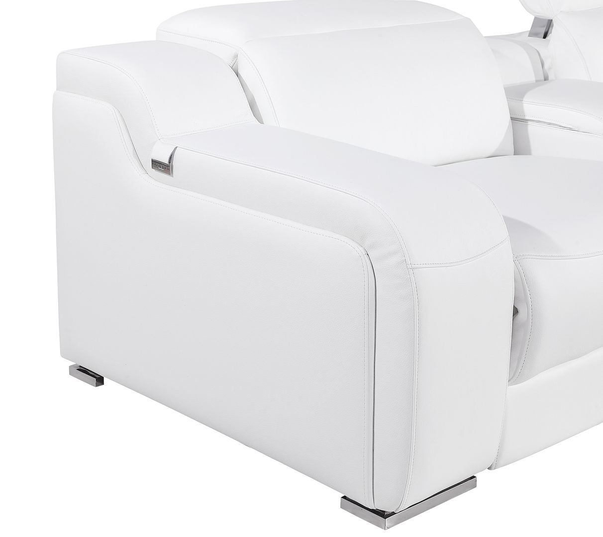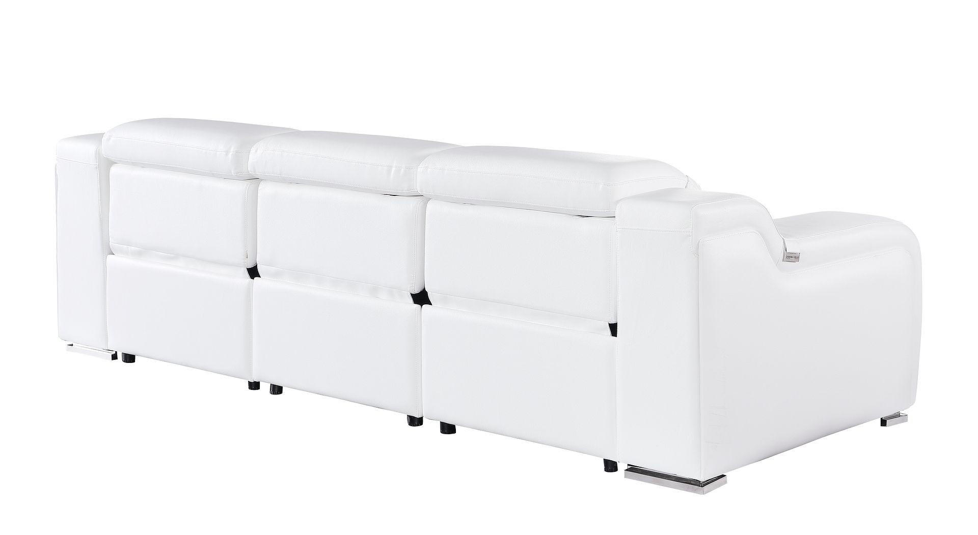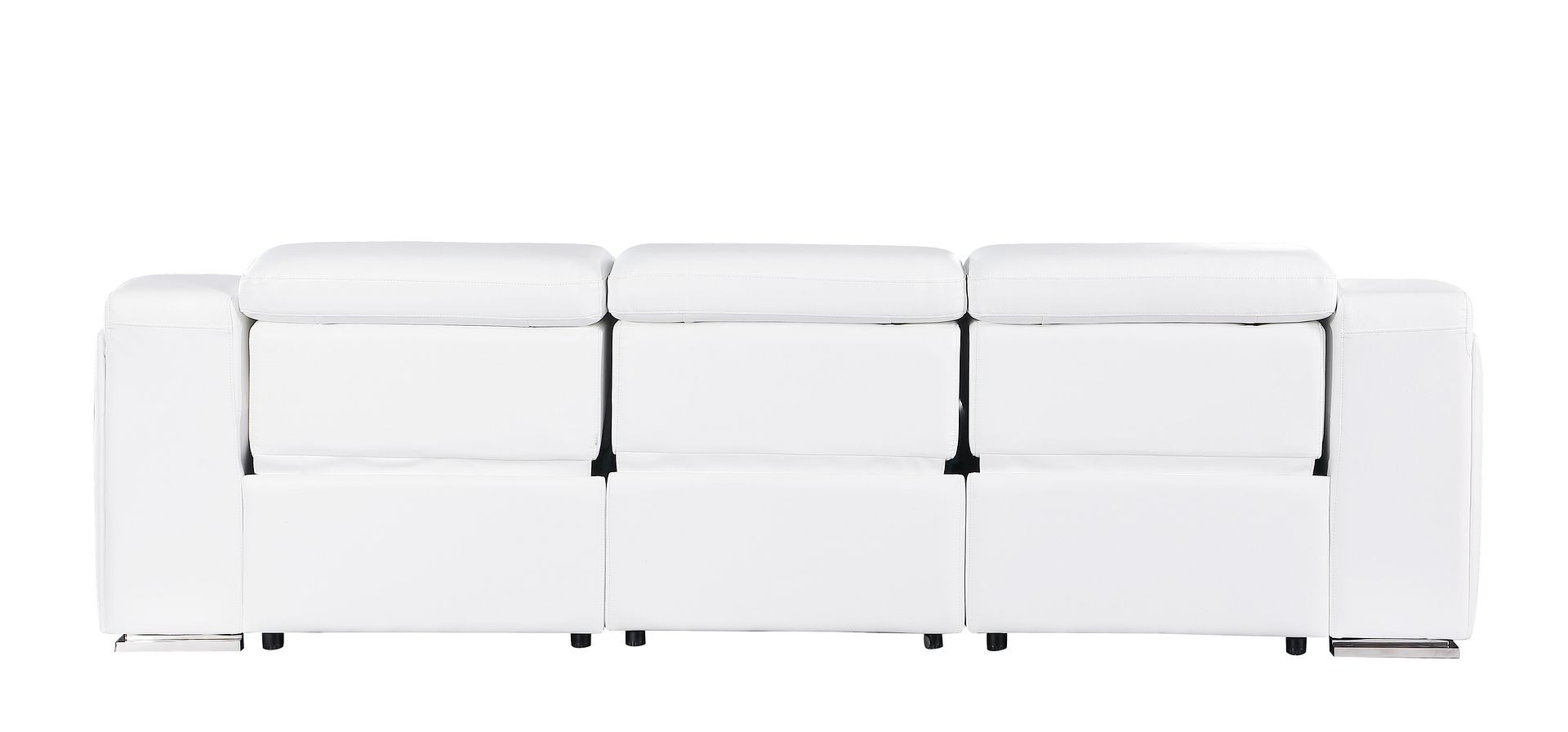 Made of the highest quality, supple leather, this 103-inch white italian leather reclining usb sofa will be the star of your space. The high grade premium leather used makes your lounging luxuriously comfortable and adds an elegant appeal to your space. Solid colors give you lots of decorative options and are easy to work into your decor scheme. Pocket spring construction gives this piece strong support and makes it comfortable to sit even for long periods of time. Rolled arms offer a comfy place to rest. Silver stainless steel legs effortlessly elevate the room and add a touch of contemporary design. A great showpiece for your room, this sofa is a must have. 39.00-inch h x 103.00-inch w x 41.00-inch d.