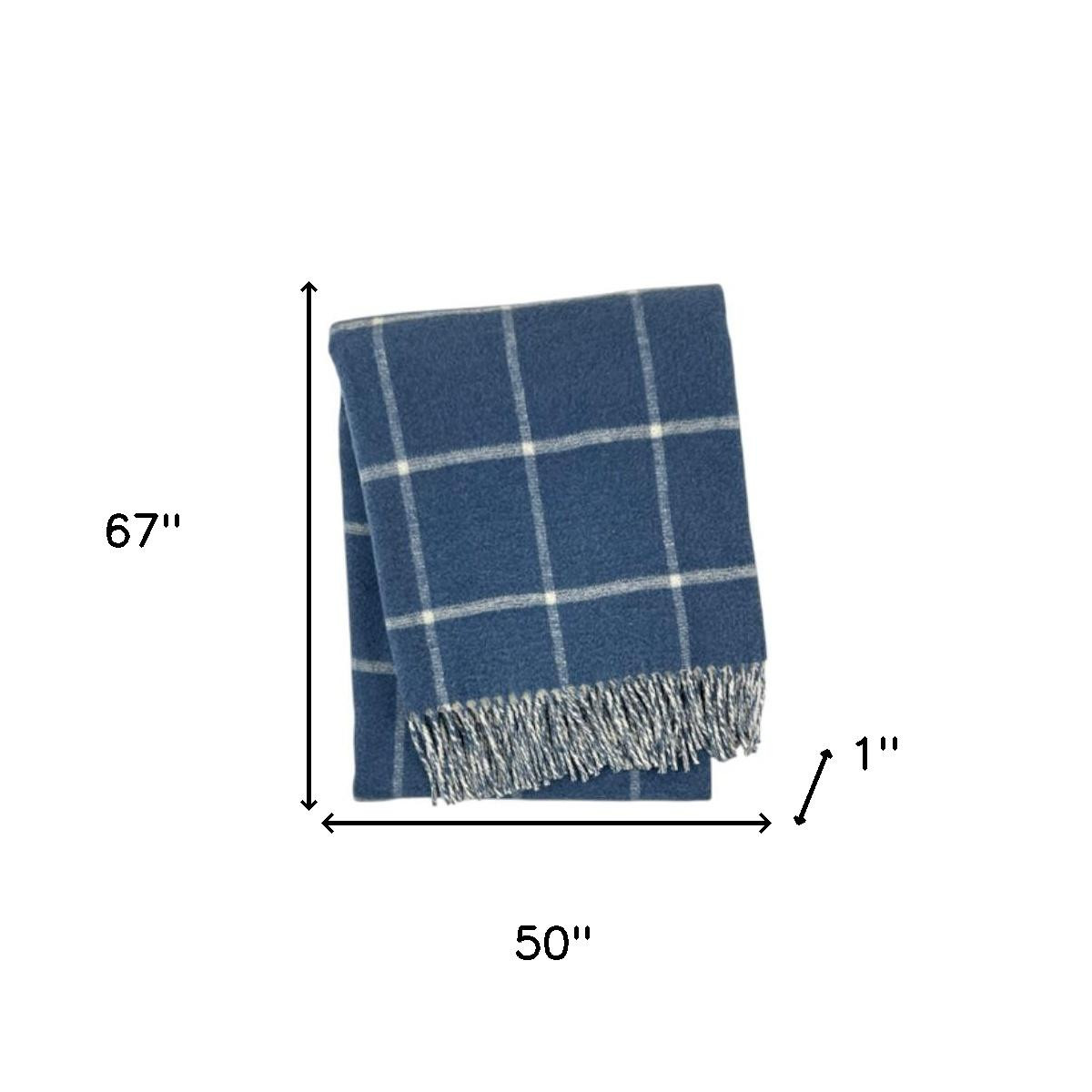 This 50-inch x 67-inch denim blue and white cotton blend woven plaid throw blanket with fringe is the perfect accent you've been searching for. Features a woven plaid design that offers sumptuous softness and texture that you'll cherish for years to come. Made from cotton blend this blanket will make a great addition to any room it's added to. Add extra texture to your decor and turn your room into an inviting space. This cozy throw blanket makes the perfect add-on to movie nights and lazy afternoons. 67-inch h x 50-inch w x 1-inch d.
