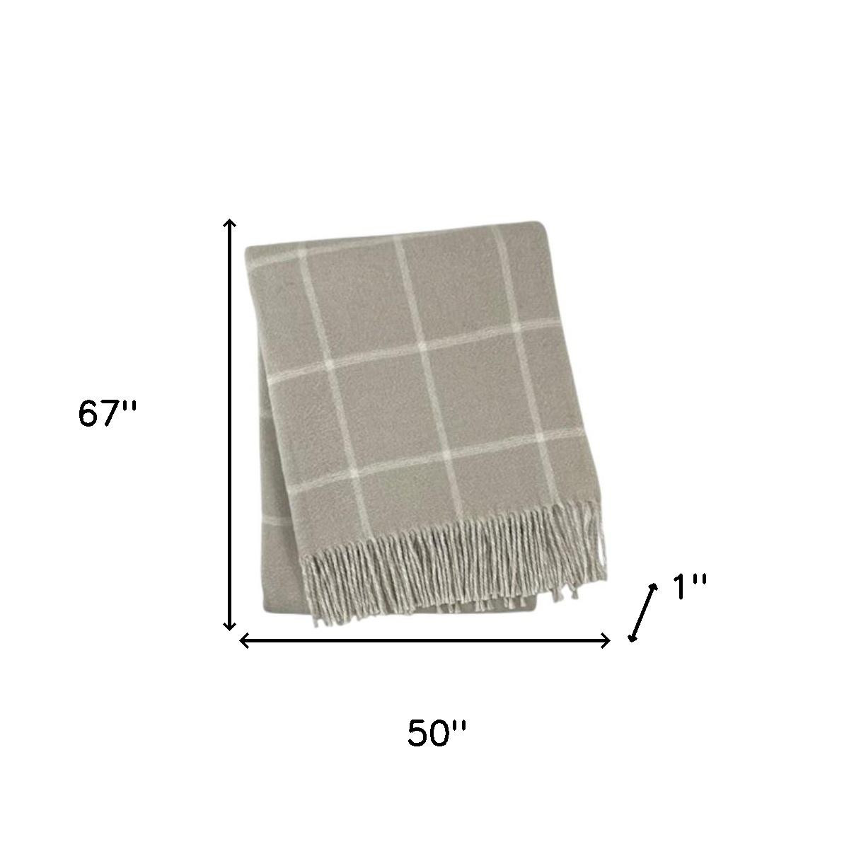 This 50-inch x 67-inch sand and white cotton blend woven plaid throw blanket with fringe is the best (and most stylish) way to wrap you and your loved ones in the epitome of cozy all year long. Features a woven plaid design that offers sumptuous softness and texture that you'll cherish for years to come. Made from cotton blend this blanket will make a great addition to any room it's added to. Layering your furnishings with a decorative throw has the ability to awaken a tired living room or elevate the design of your bedroom simply by providing elements of color and texture that weren't there before. This cozy throw blanket makes the perfect add-on to movie nights and lazy afternoons. 67-inch h x 50-inch w x 1-inch d.