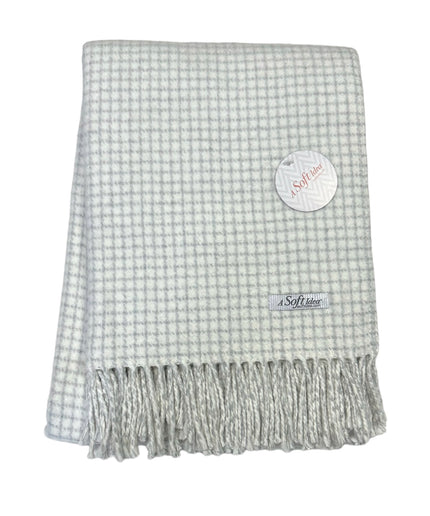 woven plaid throw blanket fringe, blend woven plaid throw blanket, woven plaid throw blanket, plaid throw blanket fringe, 50" X 67" cream light gray cotton |