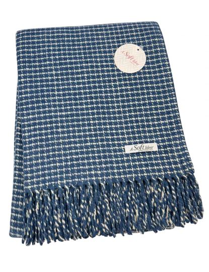 This 50-inch x 67-inch denim blue and cream cotton blend woven plaid throw blanket with fringe is the best (and most stylish) way to wrap you and your loved ones in the epitome of cozy all year long. Features a woven plaid design that offers sumptuous softness and texture that you'll cherish for years to come. Made from cotton blend this blanket will make a great addition to any room it's added to. Layering your furnishings with a decorative throw has the ability to awaken a tired living room or elevate the design of your bedroom simply by providing elements of color and texture that weren't there before. This cozy throw blanket is sure to become your go-to couch companion. 67-inch h x 50-inch w x 1-inch d.