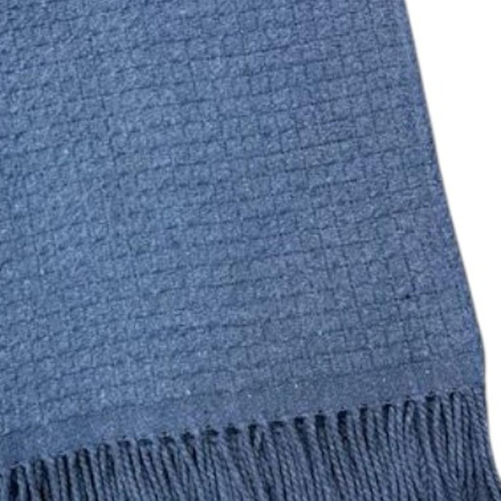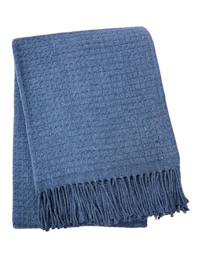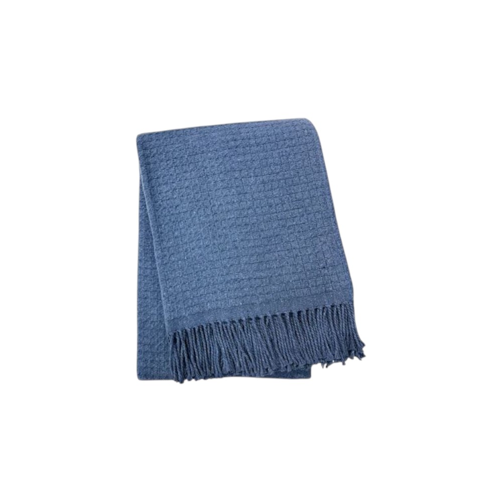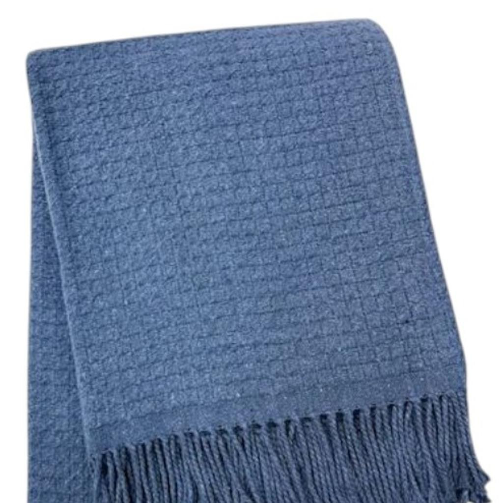 This 50-inch x 67-inch denim blue cotton blend woven throw blanket with fringe is the perfect accent you've been searching for. This woven throw offers sumptuous softness and texture that you'll cherish for years to come. Made from cotton blend this blanket will make a great addition to any room it's added to. Add extra texture to your decor and turn your room into an inviting space. This cozy throw blanket is sure to become your go-to couch companion. 67-inch h x 50-inch w x 1-inch d.