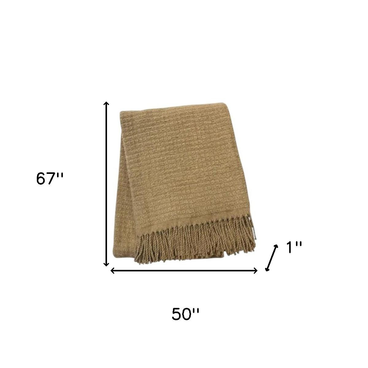 Bring warmth, comfort and style to your space with this 50-inch x 67-inch stone cotton blend woven throw blanket with fringe. This woven throw offers sumptuous softness and texture that you'll cherish for years to come. Made from cotton blend this blanket will make a great addition to any room it's added to. Add extra texture to your decor and turn your room into an inviting space. This cozy throw blanket is sure to become your go-to couch companion. 67-inch h x 50-inch w x 1-inch d.