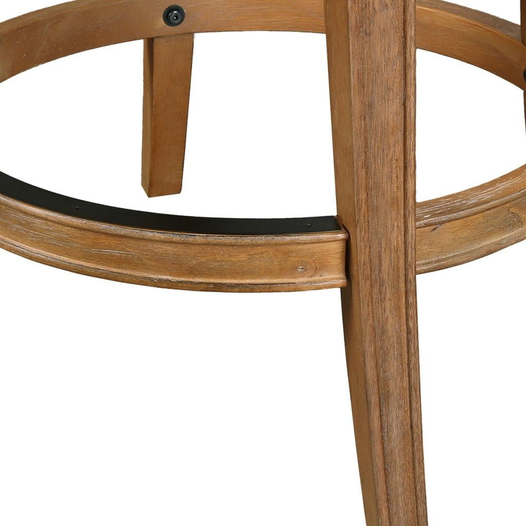 Bring a trendy bar vibe to your space, with this linen and brown fabric and solid wood low back counter height swivel bar chair. A brown solid wood frame is finished off with a linen fabric seat that is the epitome of quality construction and design. Designed with a footrest for comfort and convenience. Not only good looking and stylish, this chair features a round shaped seat and a low back for the ultimate in comfort and enjoyment. 37.00-inch h x 20.00-inch w x 21.00-inch d.