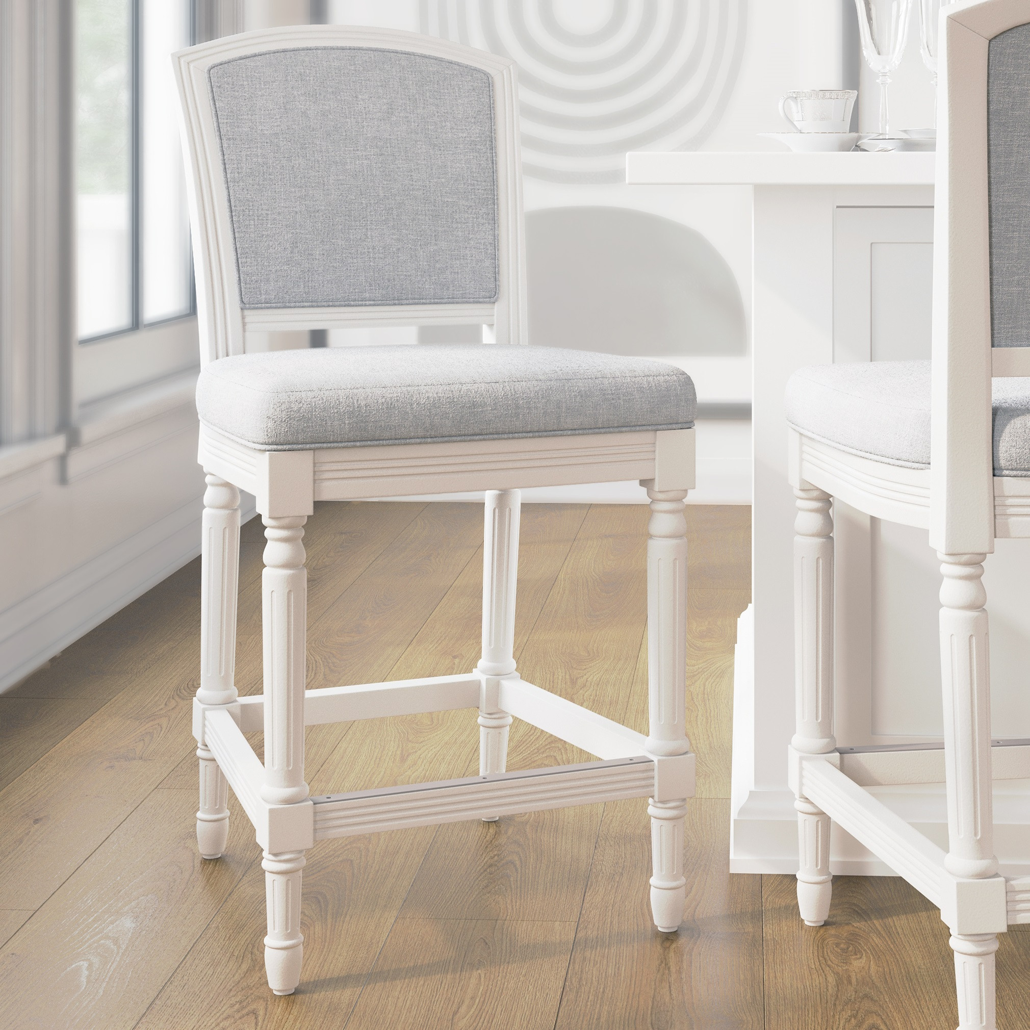 wood counter height bar chair, white fabric solid wood counter, counter height bar chair, gray white fabric solid wood, fabric solid wood counter height |