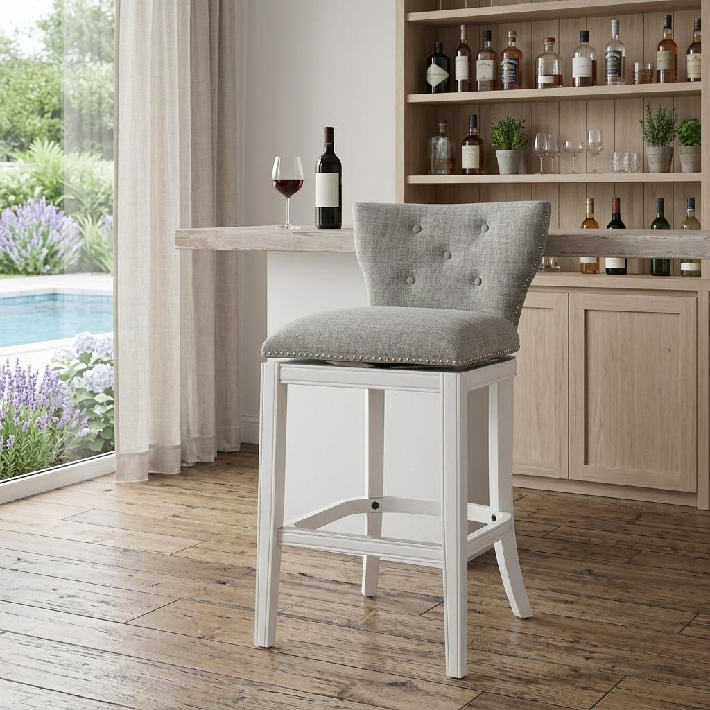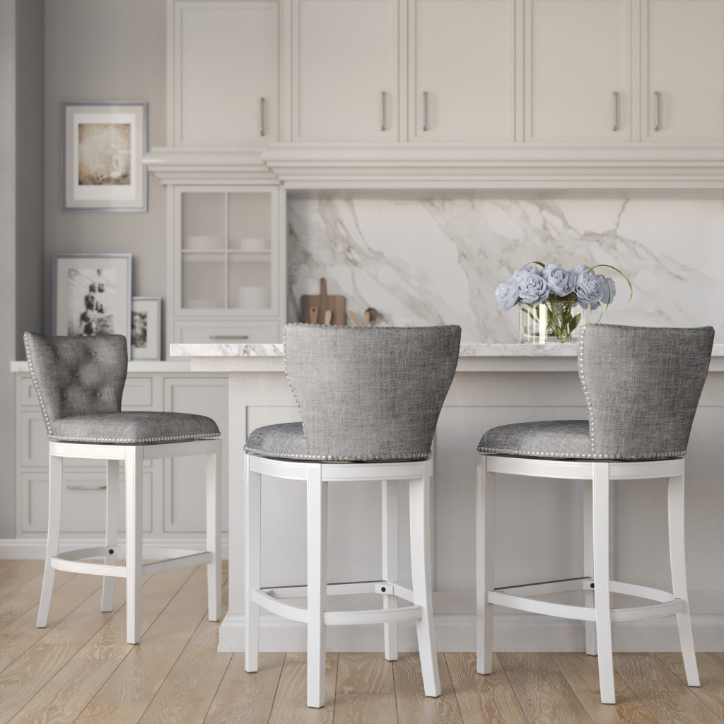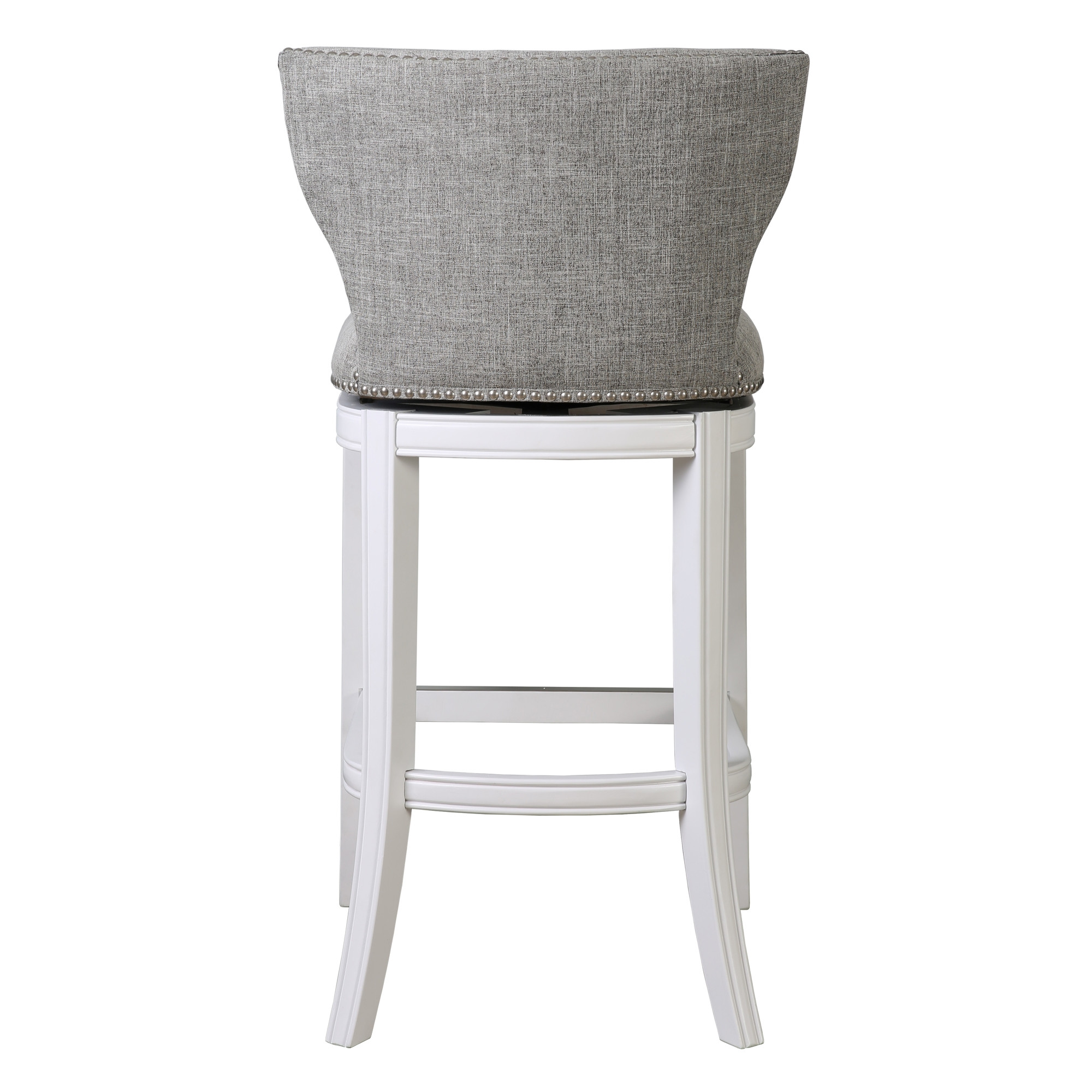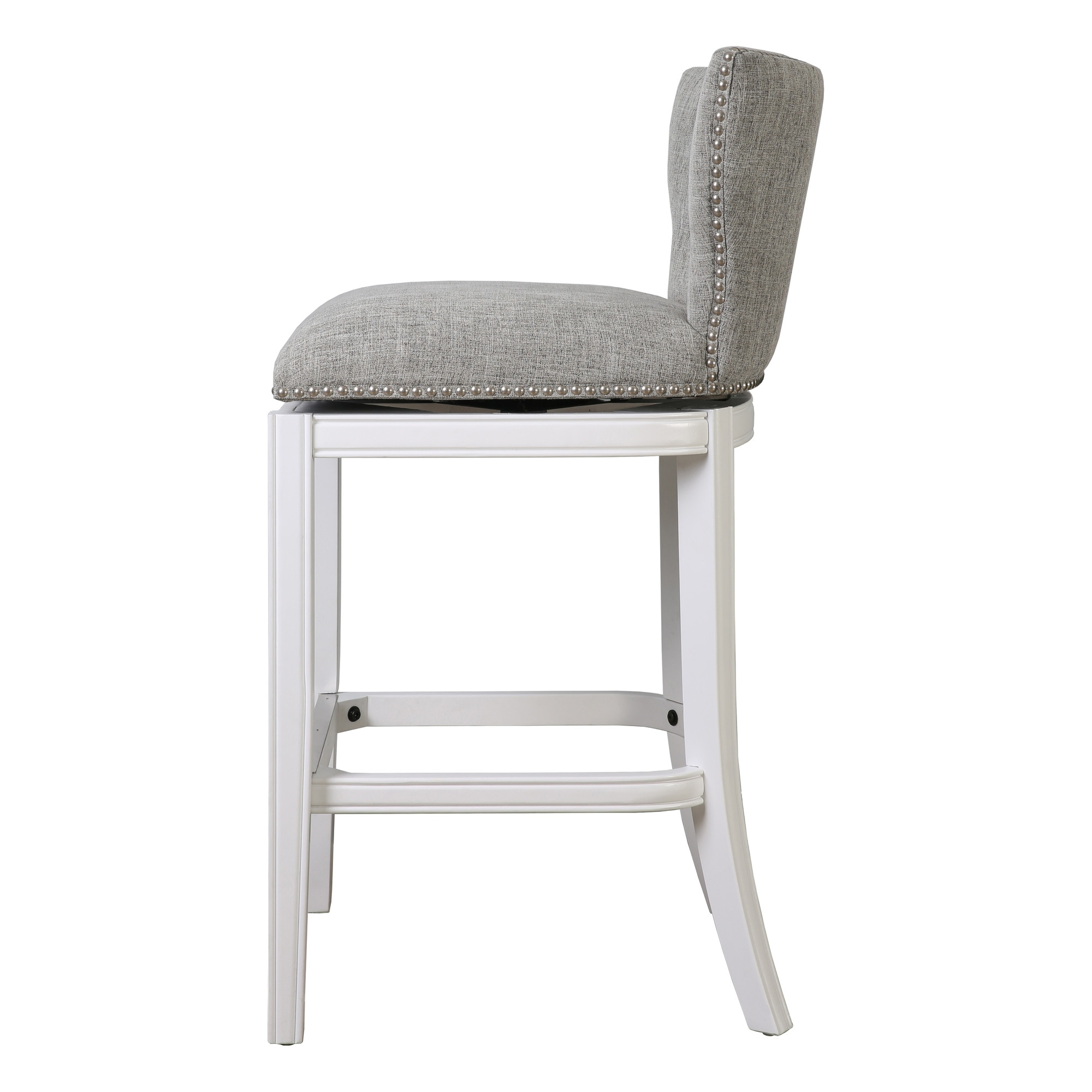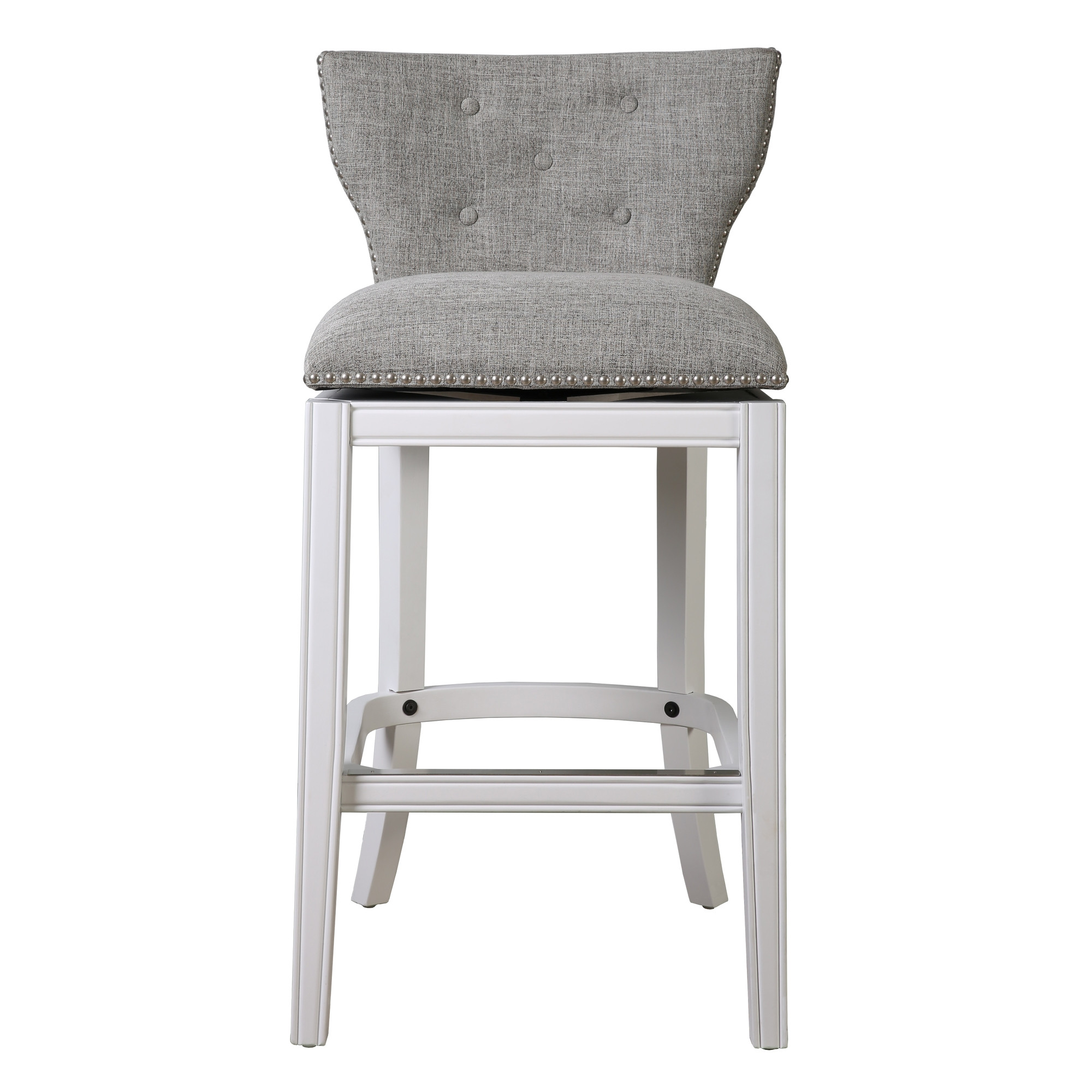 gray white fabric solid wood, gray white fabric, fabric solid wood low bar, white fabric solid wood low, bar height swivel bar chair |