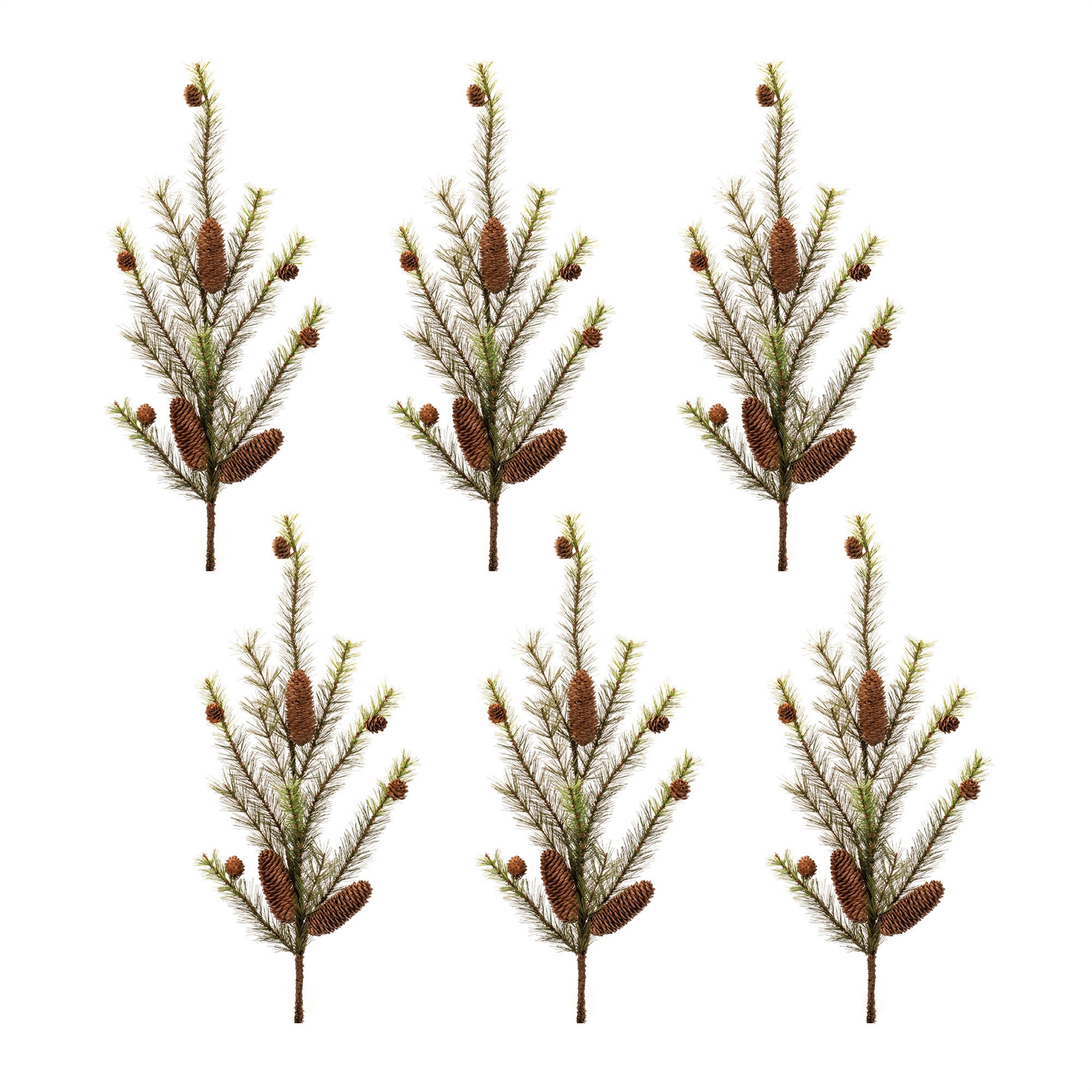 Set of six 10-inch green and brown artificial pine brings a touch of nature to your home decor. Ideal for tabletop arrangements, these artificial pine trees effortlessly enhance your space. The rich green and brown hues add depth and warmth, making them perfect for harvest celebrations or everyday elegance. Crafted from durable plastic, they are designed to withstand the test of time without losing their charm. Each set includes six individual plants, allowing for versatile styling options throughout your home. These lifelike trees provide the beauty of nature without the maintenance needed for real plants, making them a practical addition to any room. Enjoy the aesthetic appeal and seasonal cheer they bring to your living areas. 32.00-inch h x 9.50-inch w x 5.25-inch d.