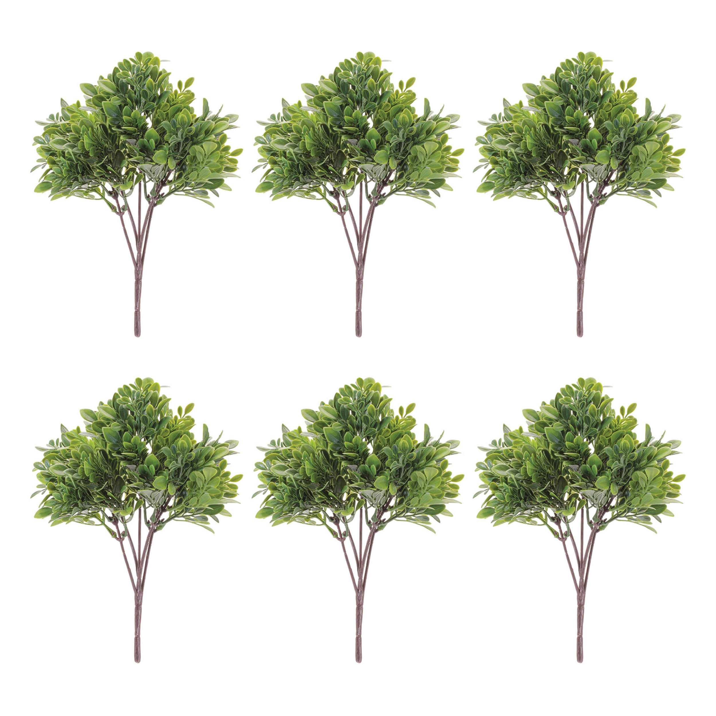 Set of six 12-inch green and brown artificial foliage brings a touch of nature to your home. Ideal for tabletop placement, this set features realistic foliage that complements various decor styles. The lush green and rich brown colors add depth and vibrancy to any space. Crafted from durable plastic, these artificial plants require no maintenance, making them perfect for busy lifestyles. Whether you're celebrating harvest season or simply want to enhance your living area, these foliage pieces create an inviting atmosphere. With six plants included, you can arrange them creatively to suit your personal style. Enjoy the beauty of nature indoors without the fuss of traditional plants. 4.90-inch h x 11.50-inch w x 7.45-inch d.