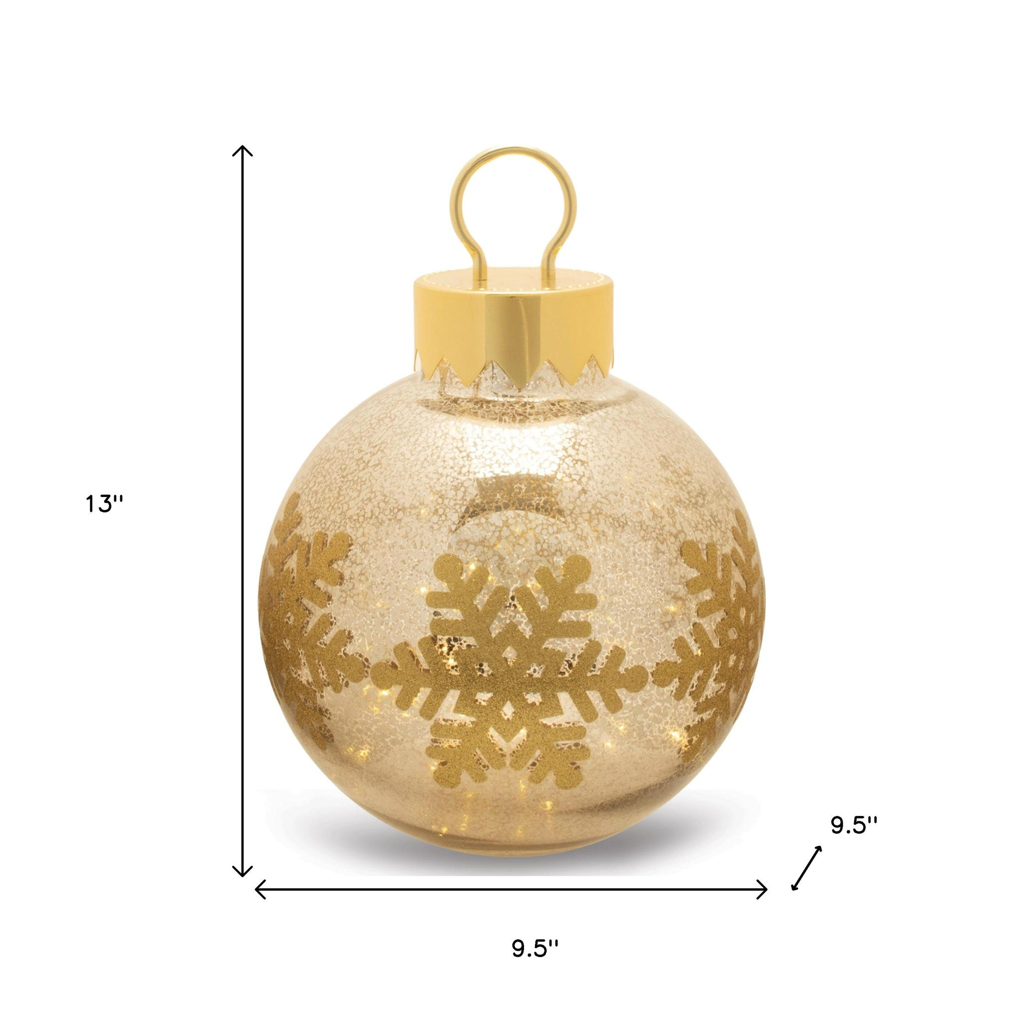 The led mercury glass ornament 13-inchh animated glass ball ornament adds a touch of elegance to your festive decor. This stunning hanging ornament features a captivating design that reflects the joy of the christmas season. Made from durable glass, it beautifully captures and refracts light, creating a mesmerizing effect in any room. Perfect for your christmas tree or as part of a festive display, this ornament will surely become a cherished part of your holiday traditions. Its animated design brings an element of whimsy and enchantment, making it an ideal choice for celebrating special moments with family and friends. Elevate your holiday decorations with this exquisite piece that embodies the spirit of christmas. 13-inch h x 9.5-inch w x 9.5-inch d.