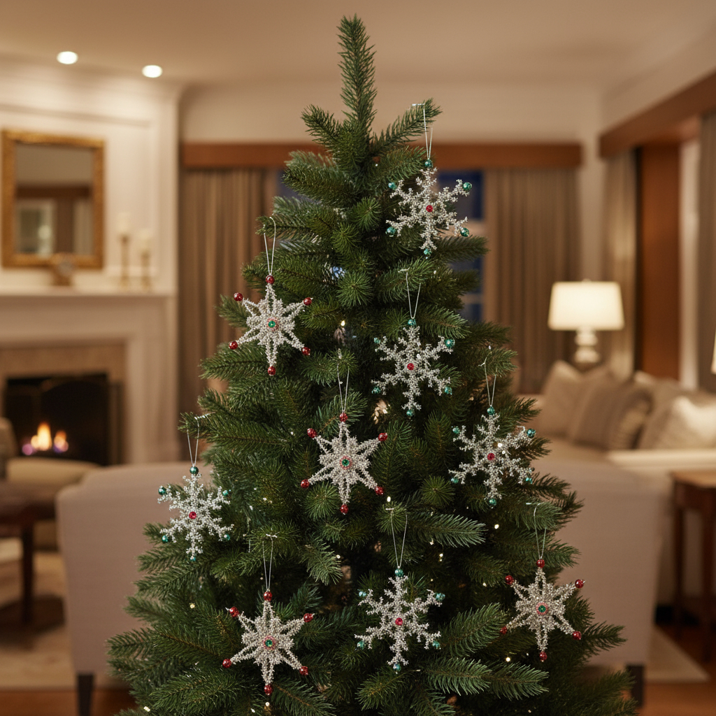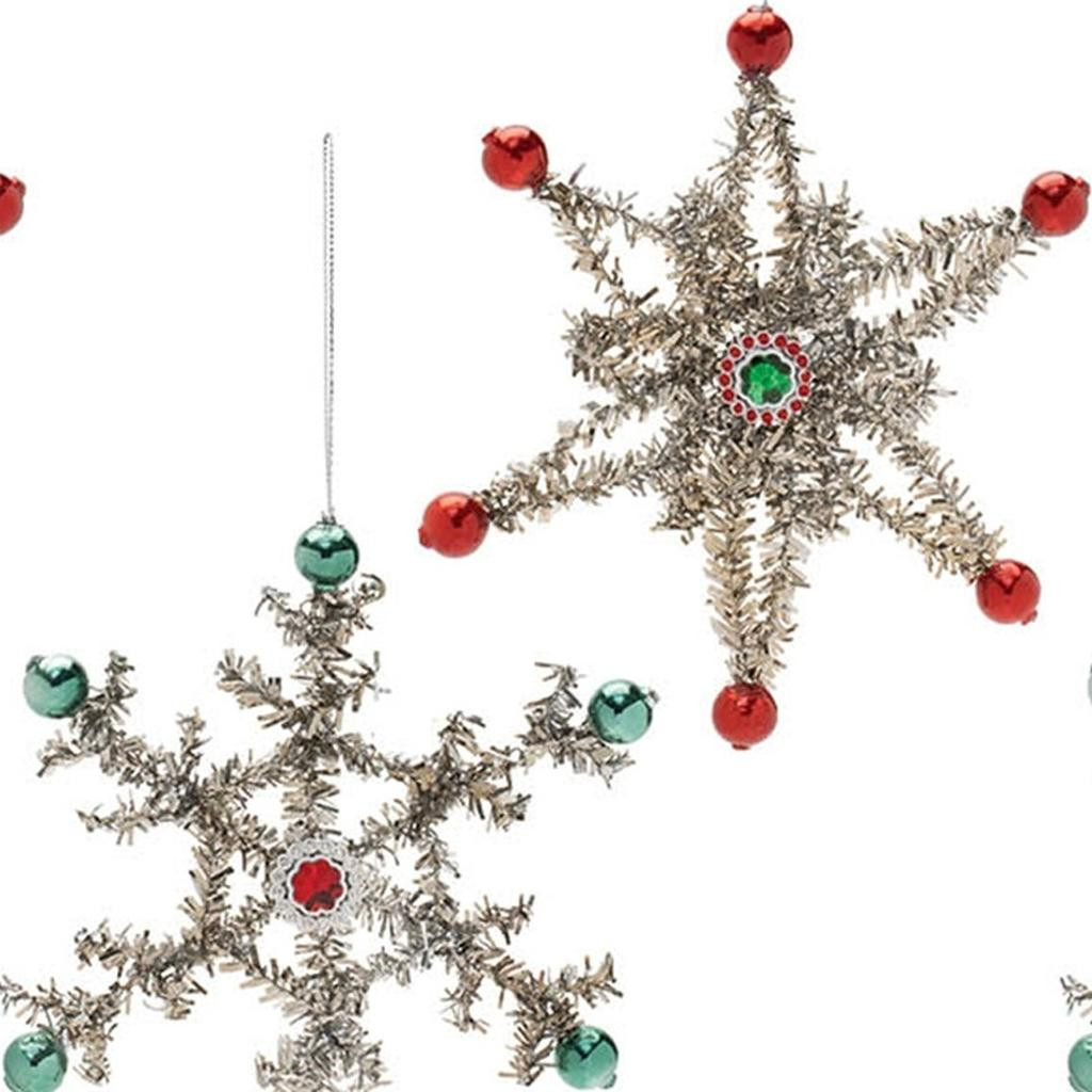 Jeweled Tinsel Snowflake Ornament (Set of 12) |