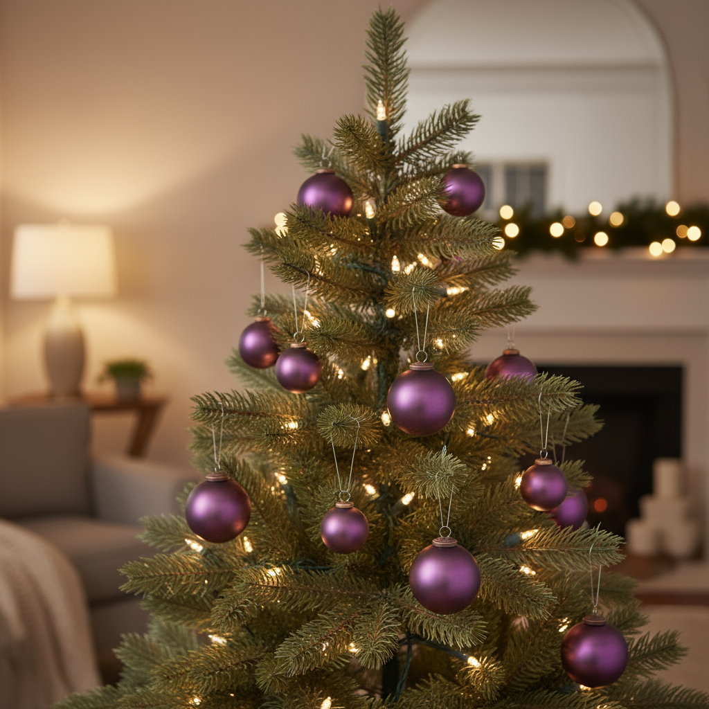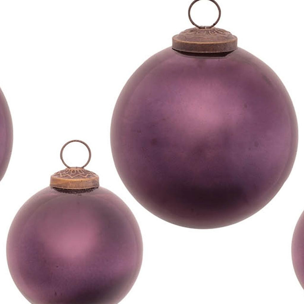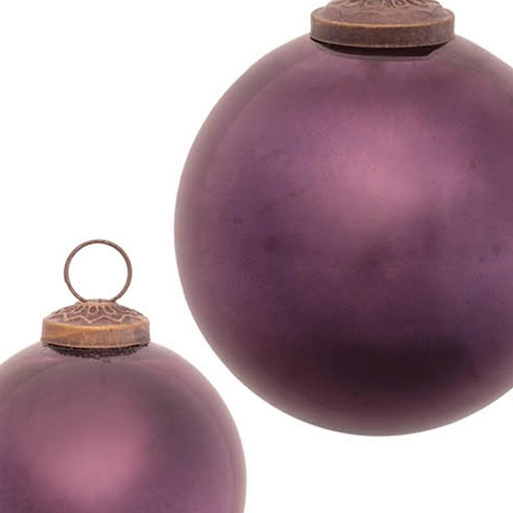 Set of six purple glass ball ornaments adds a touch of elegance to your festive decor. These hanging ornaments are perfect for adorning your christmas tree and creating a warm holiday atmosphere. Crafted from delicate glass, each ornament shines beautifully, reflecting the lights and colors around them. This set includes six captivating purple ball ornaments, offering a cohesive look to your seasonal decorations. Embrace the spirit of christmas with these stunning pieces that enhance the charm of any room. Whether used on the tree or as decorative accents throughout your home, their rich hue brings a festive flair to your celebrations. Celebrate this holiday season with timeless elegance and style with these exquisite ornaments. 3.00-inch h x 3.00-inch w x 3.00-inch d.