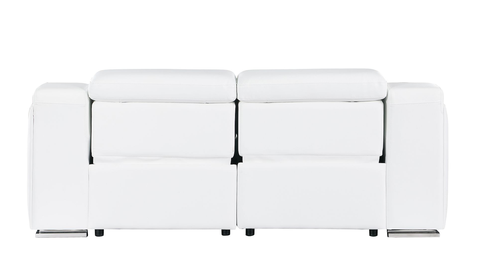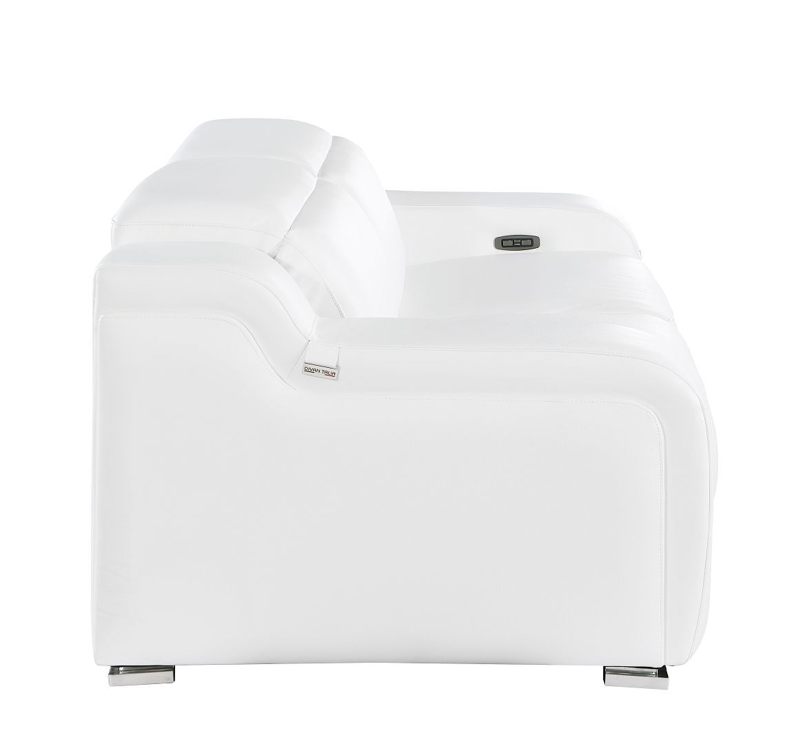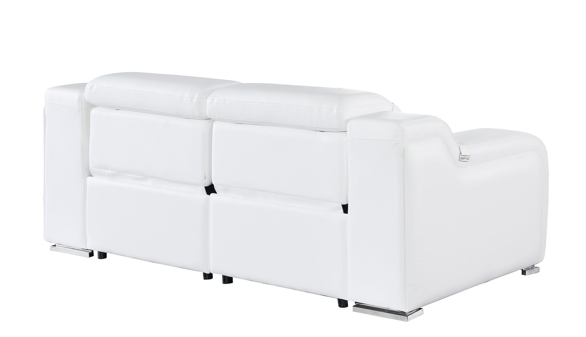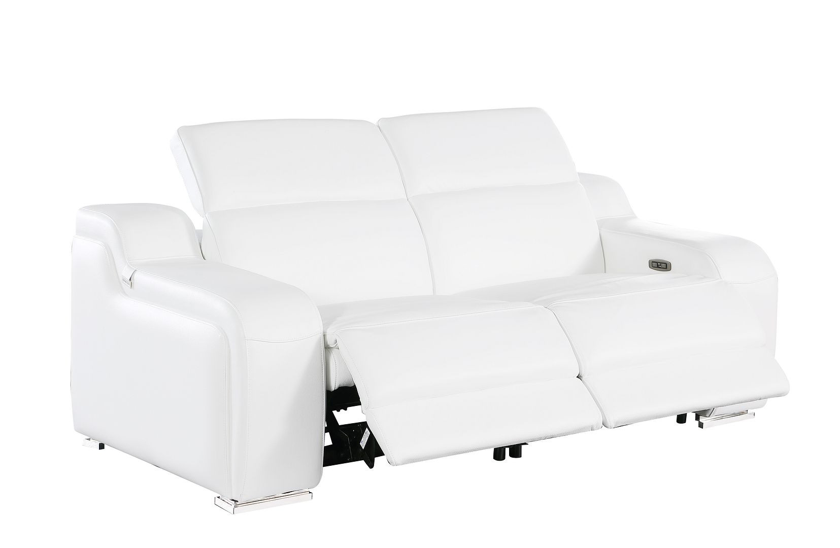An interior designer's dream, this buttery soft high grade leather 76-inch white and silver italian leather power reclining loveseat will bring just the right touch to your space. The high grade premium leather used makes your lounging luxuriously comfortable and adds an elegant appeal to your space. Square arms offer a comfy place to rest and give this piece some interest and shape. Silver steel legs effortlessly elevate the room and add a touch of contemporary design. A great showpiece for your room, this sofa is a must have. 30.00-inch h x 76.00-inch w x 41.00-inch d.