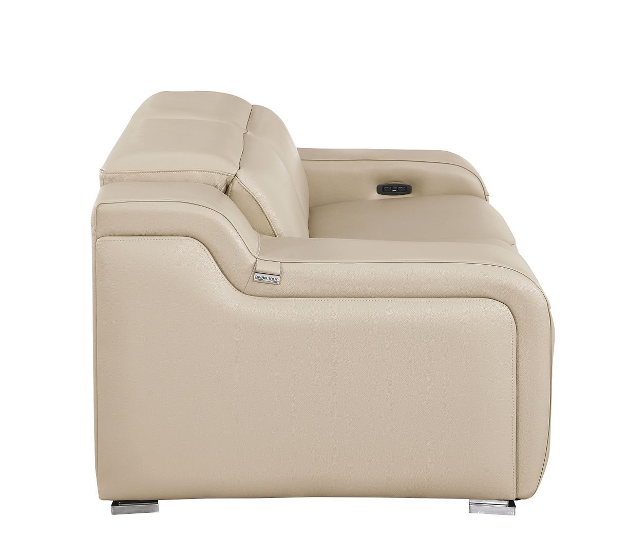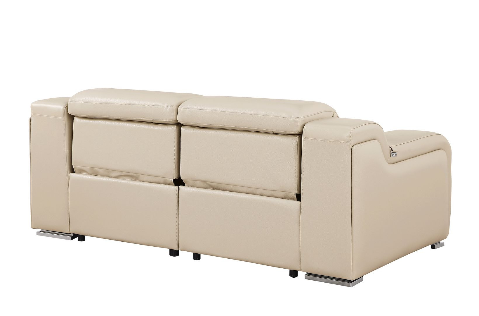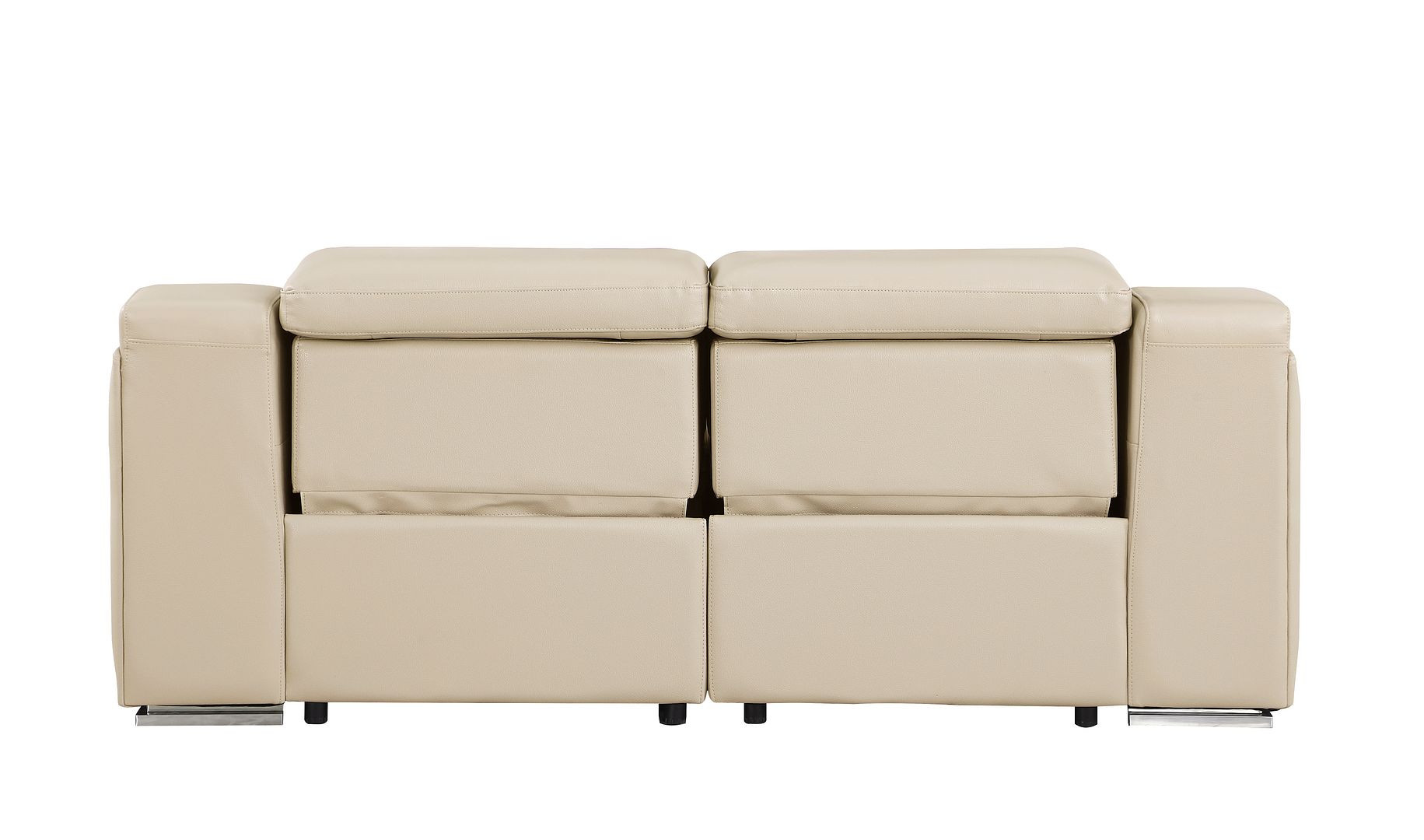 Made of top quality, supple leather, this 76-inch beige and silver italian leather power reclining loveseat will be the star of your space. The high grade premium leather used makes your lounging luxuriously comfortable and adds an elegant appeal to your space. Square arms offer a comfy place to rest and give this piece some interest and shape. Silver steel legs effortlessly elevate the room and add a touch of contemporary design. A great showpiece for your room, this sofa is a must have. 30.00-inch h x 76.00-inch w x 41.00-inch d.