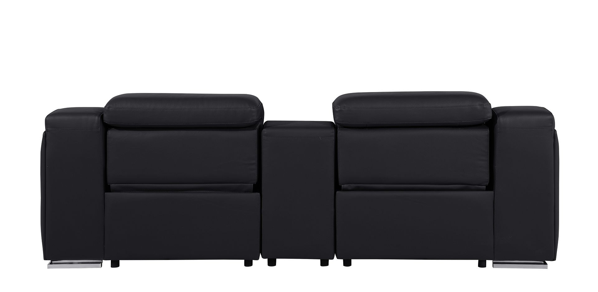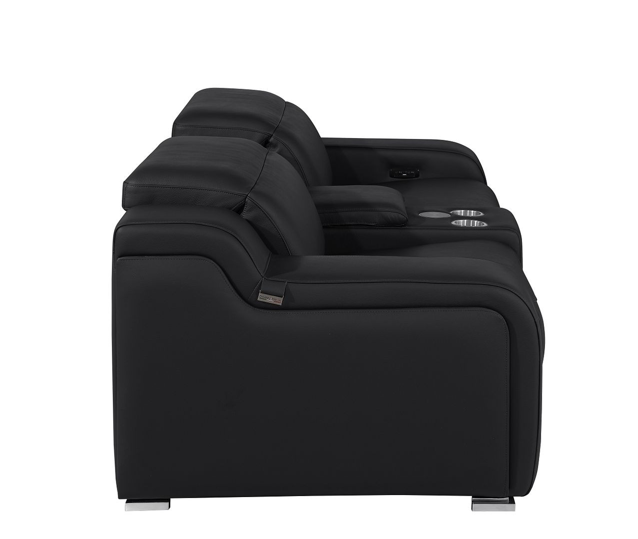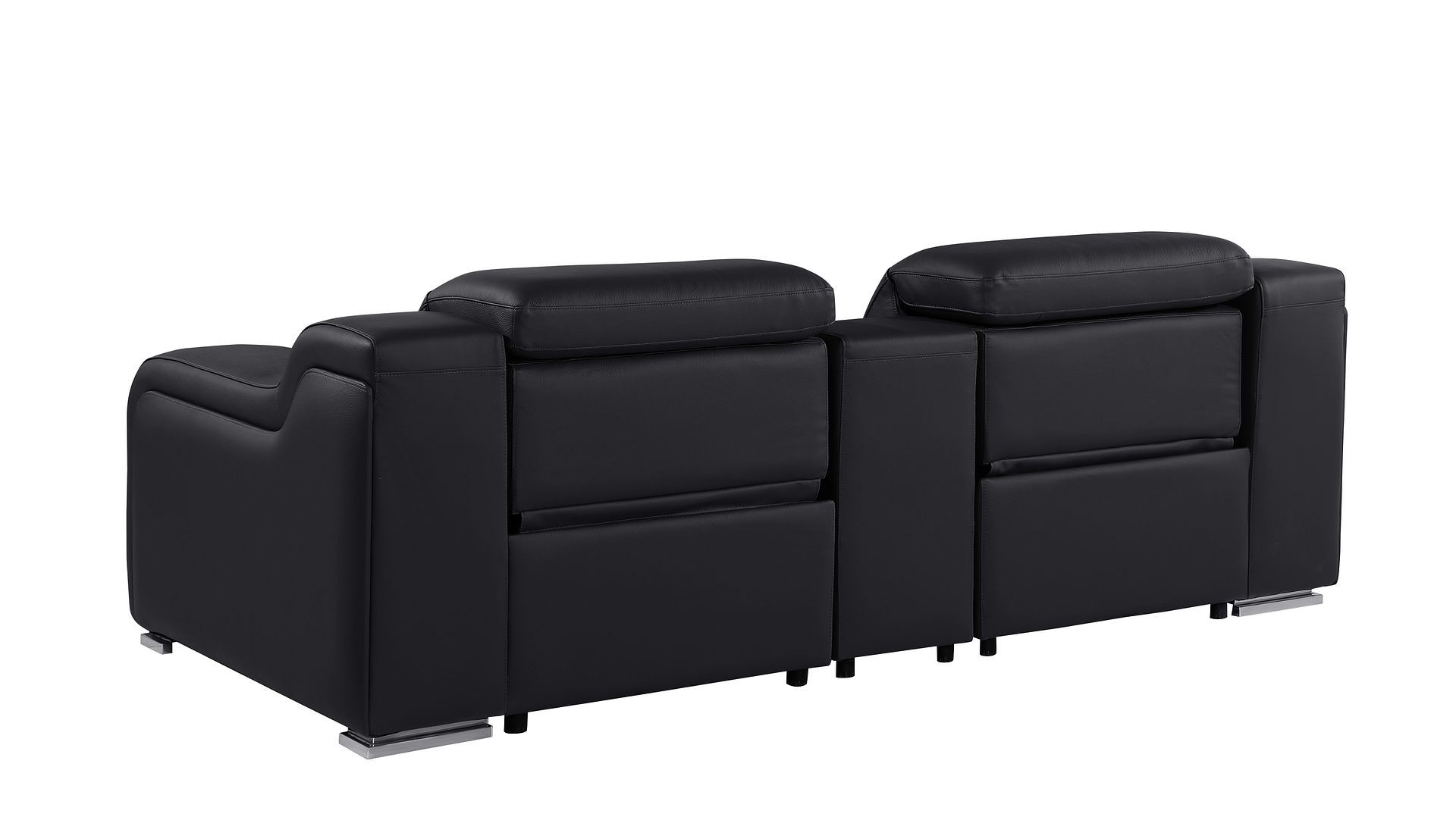 Made of top quality, supple leather, this 89-inch black and silver italian leather power reclining loveseat with storage will be the star of your space. The high grade premium leather used makes your lounging luxuriously comfortable and adds an elegant appeal to your space. Square arms offer a comfy place to rest and give this piece some interest and shape. Silver steel legs effortlessly elevate the room and add a touch of contemporary design. A great showpiece for your room, this sofa is a must have. 30.00-inch h x 89.00-inch w x 41.00-inch d.