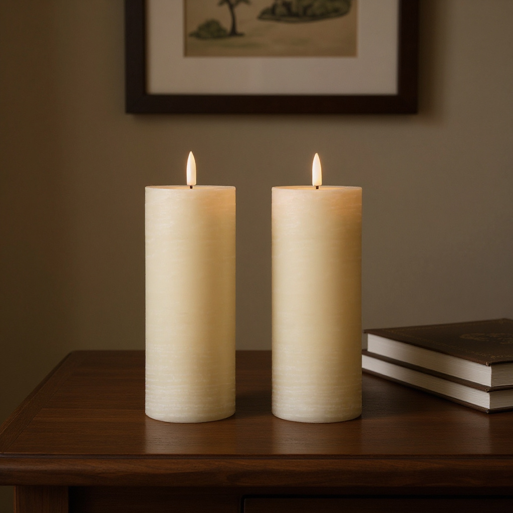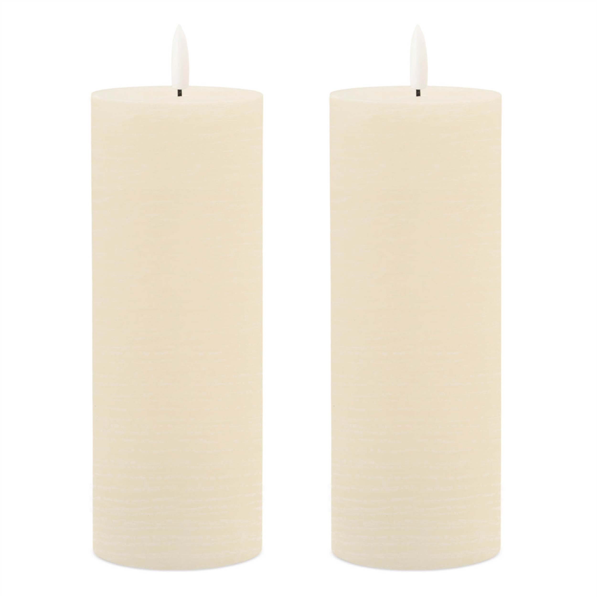 Don't miss out on the enchantment of candlelight. Embrace the convenience and beauty of this set of two ivory unscented candle flameless pillar candles today. The classic shape makes this pillar candle a versatile addition to any decor style, whether it's traditional, contemporary, or modern. Illuminate your space with the gentle flickering glow that mimics the dance of real candlelight. Let the warm glow of candlelight create an intimate and welcoming ambiance for your guests or a soothing atmosphere for yourself. 8.00-inch h x 3.00-inch w x 3.00-inch d.