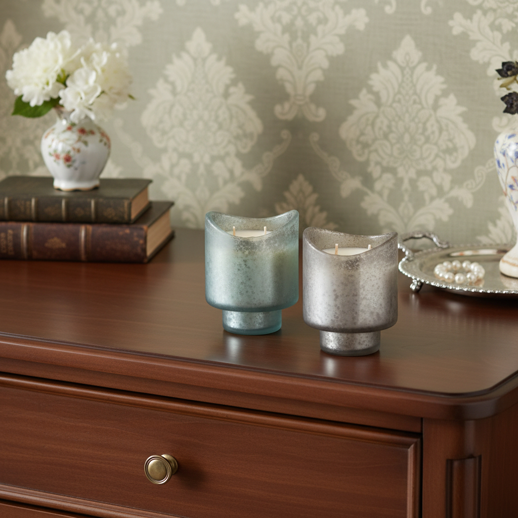 With our set of two white currant scented two wick candles in frosted glass holders, you can experience the warm and inviting glow of candlelight. This vintage style designer candle set adds a touch of artistry and personality to your space, becoming a conversation starter and a reflection of your individual style. This red currant scented candle is versatile and can be appreciated by many people. Our carefully curated, distressed frosted glass candle holder is included with the candle, and it is not just decorative but also provides a secure and stable base for your candle. Let the warm glow of candlelight create an intimate and welcoming ambiance for your guests or a soothing atmosphere for yourself. 5.00-inch h x 4.00-inch w x 4.00-inch d.