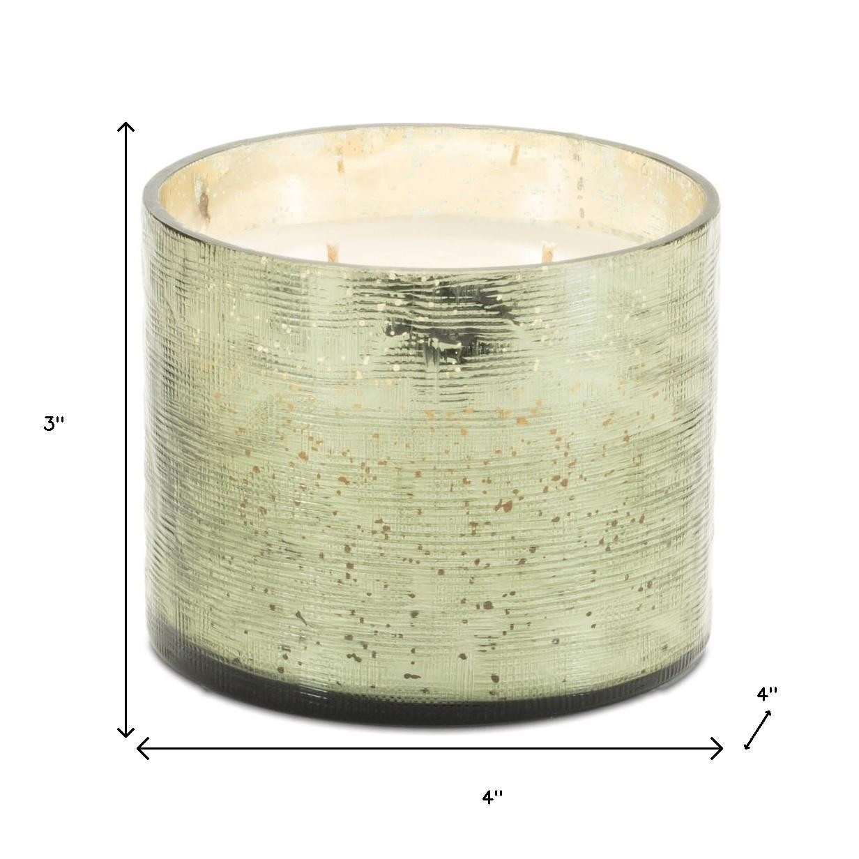 Let the warm glow of real candlelight create an intimate and welcoming ambiance for your guests or a soothing atmosphere for yourself with this 4-inch white scented two wick candle in green distressed frosted glass holder. This designer candle is a stunning blend of form and function that adds a touch of elegance and sophistication to any space. This candle will burn longer than most other types of candles because of the paraffin’s high melting point. Our carefully curated, purposefully distressed, vintage style frosted glass candle holder is included with the candle, and it is not only a vessel, but acts as stylish decorative accessory unto itself. 3.00-inch h x 4.00-inch w x 4.00-inch d.