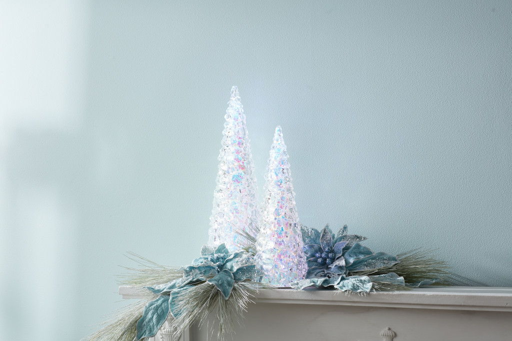 Add an air of fashion to your room and rejuvenate the space with this 18-inch white blue and pink plastic trees tabletop sculpture with led. Bring a little bit of the outdoors into your space when you decorate with this good looking accent. Led light provides an illuminating effect that adds to the decorative appeal of this special piece. A perfect decorative addition for anyone who loves a stylish look and feel. 17.50-inch h x 6.00-inch w x 6.00-inch d.