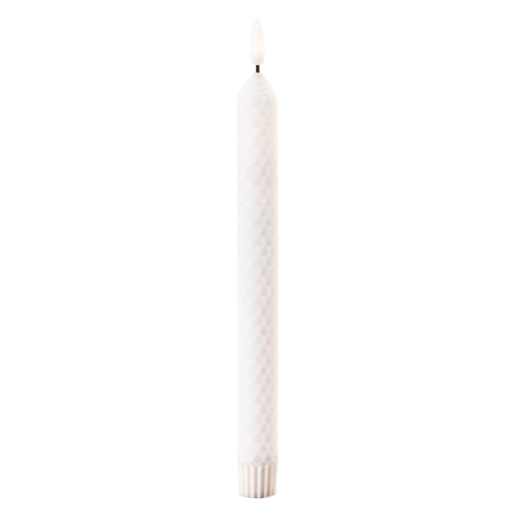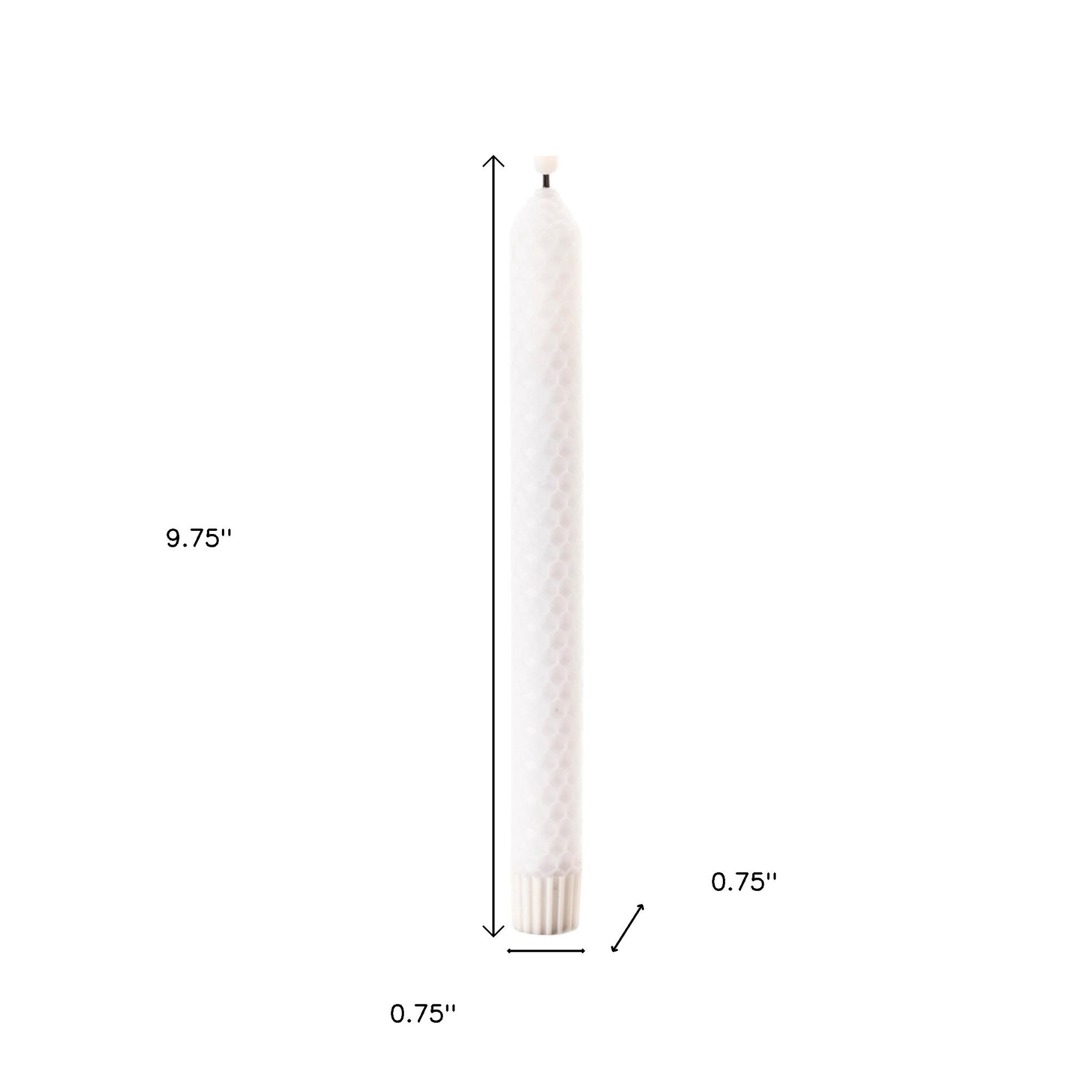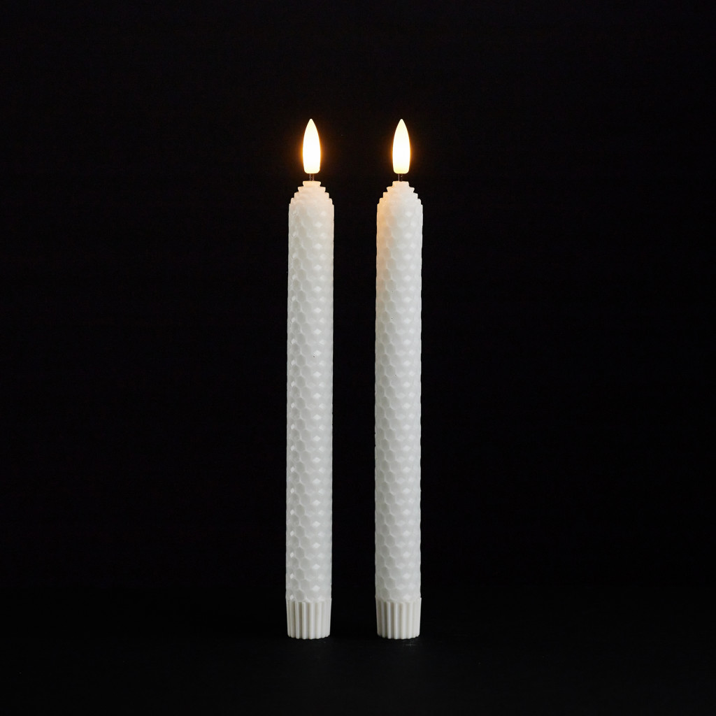 Transform your space with the radiance of this set of two white unscented candle flameless taper candles. Embrace the charm of candlelight with these slender beauties that effortlessly elevate any occasion or decor style. Illuminate your space with the gentle flickering glow that mimics the dance of real candlelight. Let the warm glow of candlelight create an intimate and welcoming ambiance for your guests or a soothing atmosphere for yourself. 9.75-inch h x 0.75-inch w x 0.75-inch d.