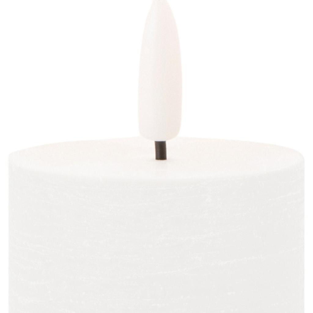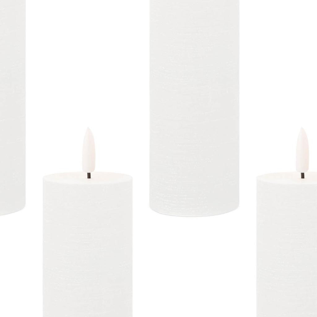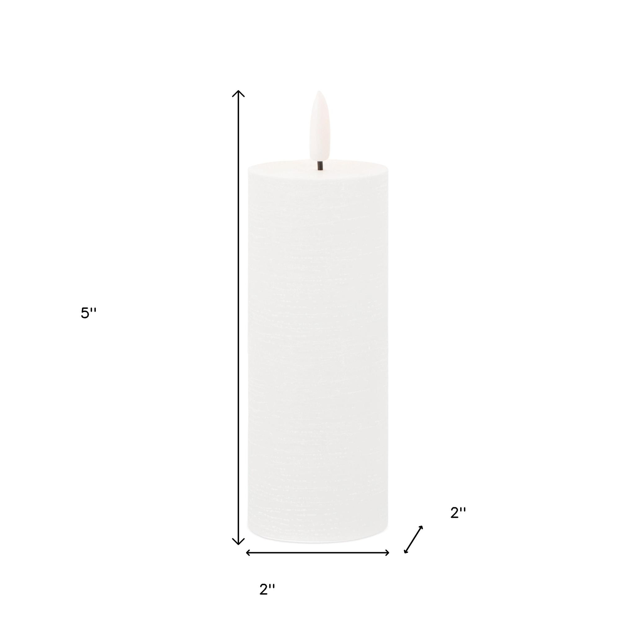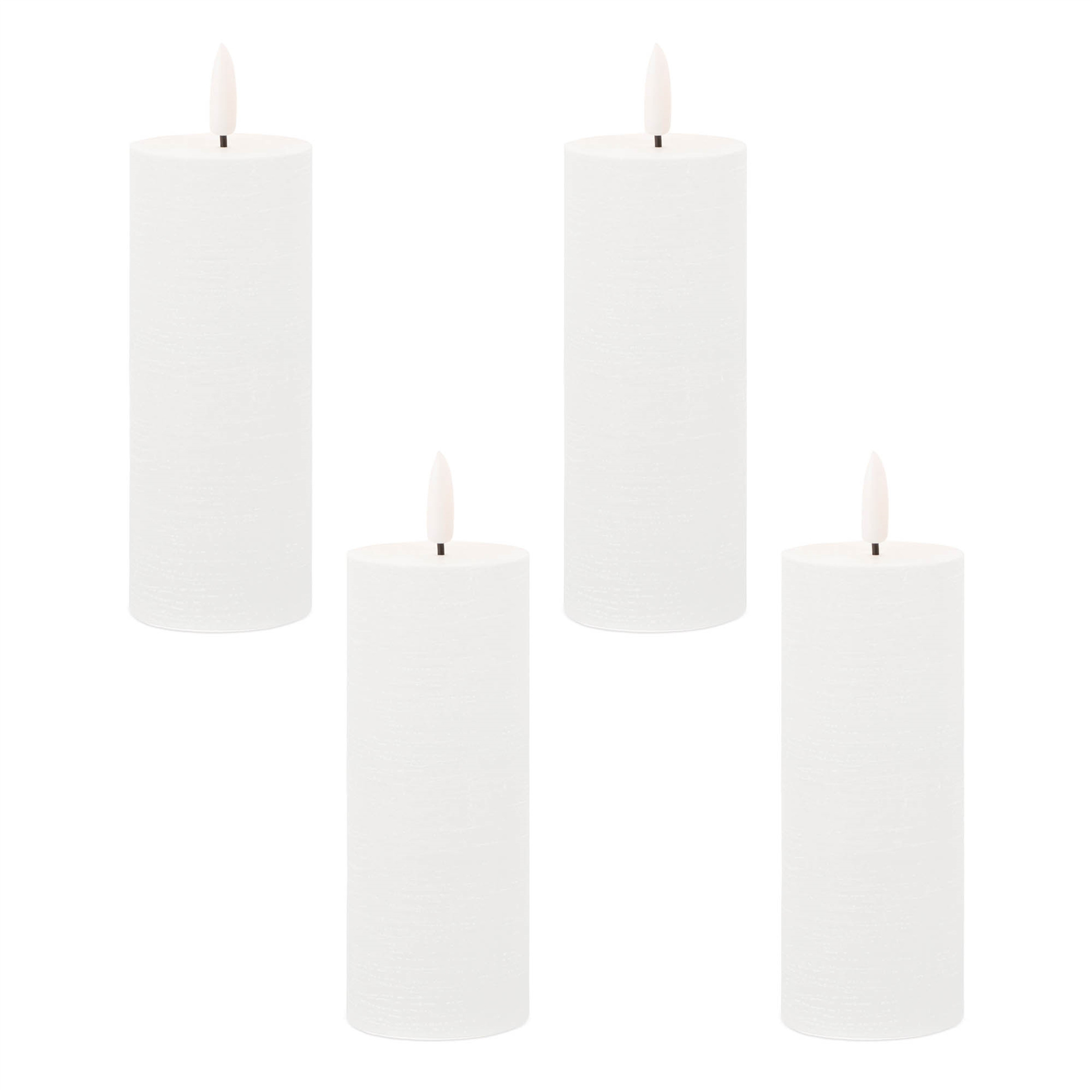 You can illuminate your home with the elegance of this set of four white unscented candle flameless pillar candles. The classic shape makes this pillar candle a versatile addition to any decor style, whether it's traditional, contemporary, or modern. Illuminate your space with the gentle flickering glow that mimics the dance of real candlelight. Let the warm glow of candlelight create an intimate and welcoming ambiance for your guests or a soothing atmosphere for yourself. 5.00-inch h x 2.00-inch w x 2.00-inch d.
