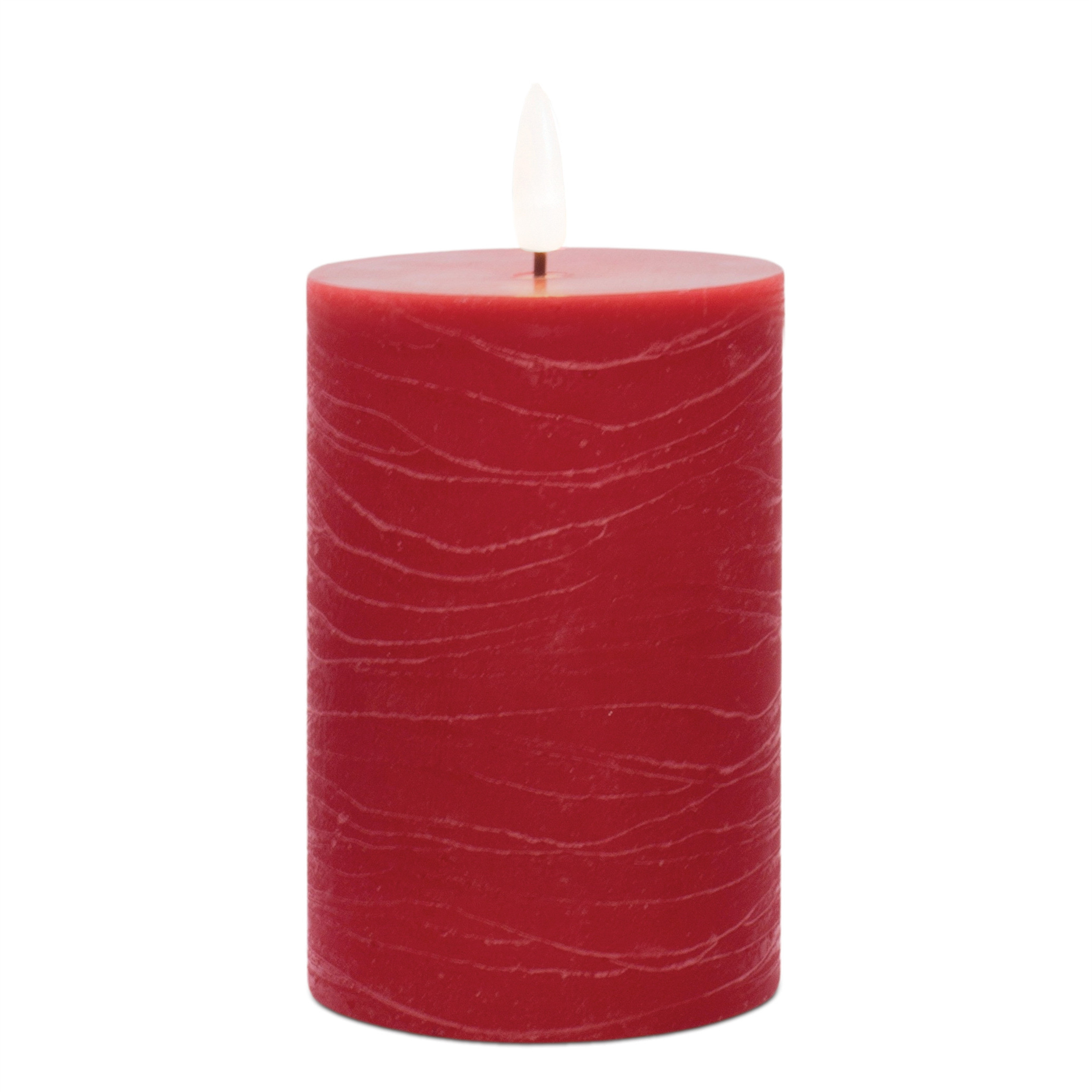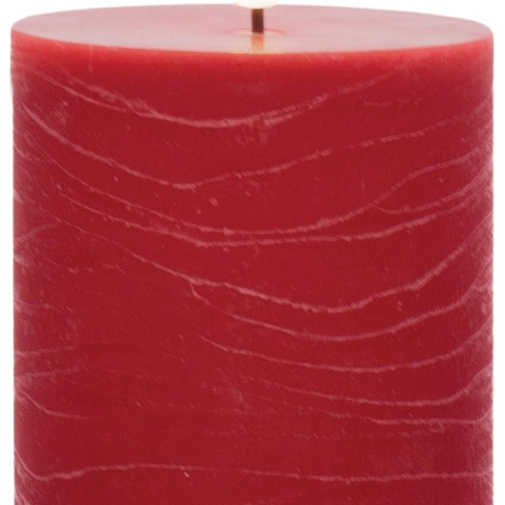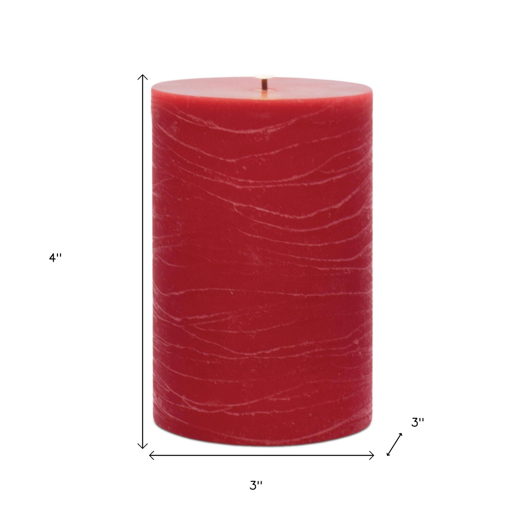 Transform your space with the radiance of this set of two red flameless pillar candles. The classic shape makes this pillar candle a versatile addition to any decor style, whether it's traditional, contemporary, or modern. The flickering feature is designed to create an authentic candlelight experience. Let the warm glow of candlelight create an intimate and welcoming ambiance for your guests or a soothing atmosphere for yourself. 4.00-inch h x 3.00-inch w x 3.00-inch d.