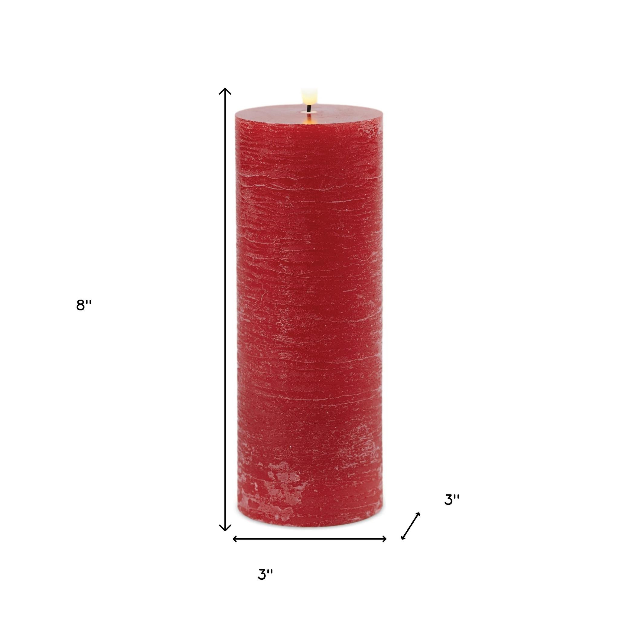 Whether it's a romantic dinner, a relaxing bath, or a special celebration, this set of two red unscented candle flameless pillar candles is the perfect complement to any occasion. The classic shape makes this pillar candle a versatile addition to any decor style, whether it's traditional, contemporary, or modern. The flickering feature is designed to create an authentic candlelight experience. Let the warm glow of candlelight create an intimate and welcoming ambiance for your guests or a soothing atmosphere for yourself. 8.00-inch h x 3.00-inch w x 3.00-inch d.