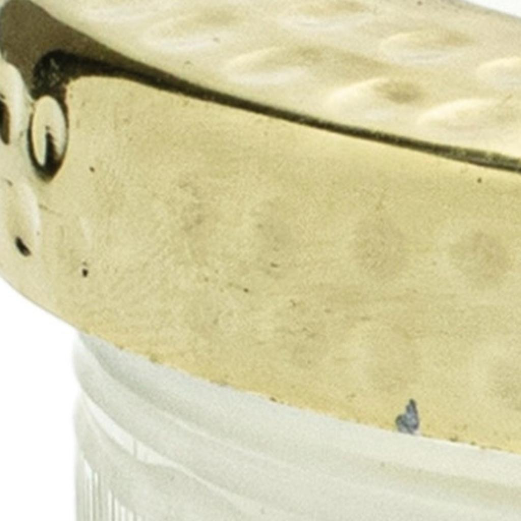 With our 4-inch white currant scented two wick candle in clear and gold glass holder, you can experience the warm and inviting glow of candlelight. This designer candle is a stunning blend of form and function that adds a touch of elegance and sophistication to any space. Made of high quality paraffin for a nice long burn. Our currant scented candle will serve as a focal point or complement the overall aesthetic of your home decor. Our carefully crafted dripless candles are designed to burn cleanly and evenly, ensuring a hassle-free and elegant ambiance in any setting. Includes a glass holder to complete the look. Illuminate your space with the gentle flickering glow that mimics the dance of real candlelight. Let the warm glow of candlelight create an intimate and welcoming ambiance for your guests or a soothing atmosphere for yourself. 4.25-inch h x 4.25-inch w x 4.25-inch d.