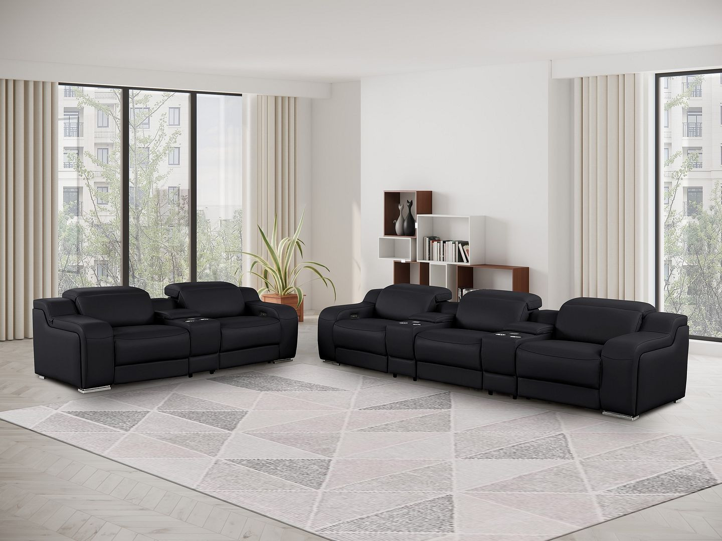 Step into a world of unparalleled seating comfort with our remarkable two piece black leather five person seating set. Prepare to enter the realm of ultimate relaxation with this reclining sofa that offers unparalleled comfort and luxurious lounging. Upholstered in supple and luxurious leather, this set has a rich and warm appeal. The presence of pocket spring seat construction helps distribute weight evenly, reducing pressure points. The inclusion of a loveseat into your mix allows a fashionable seating option in a compact design. Enjoy the added convenience and security of storage, providing a space to store everyday essentials within easy reach. 39.00-inch h x 129.00-inch w x 41.00-inch d.