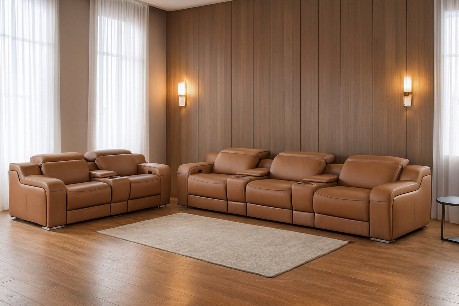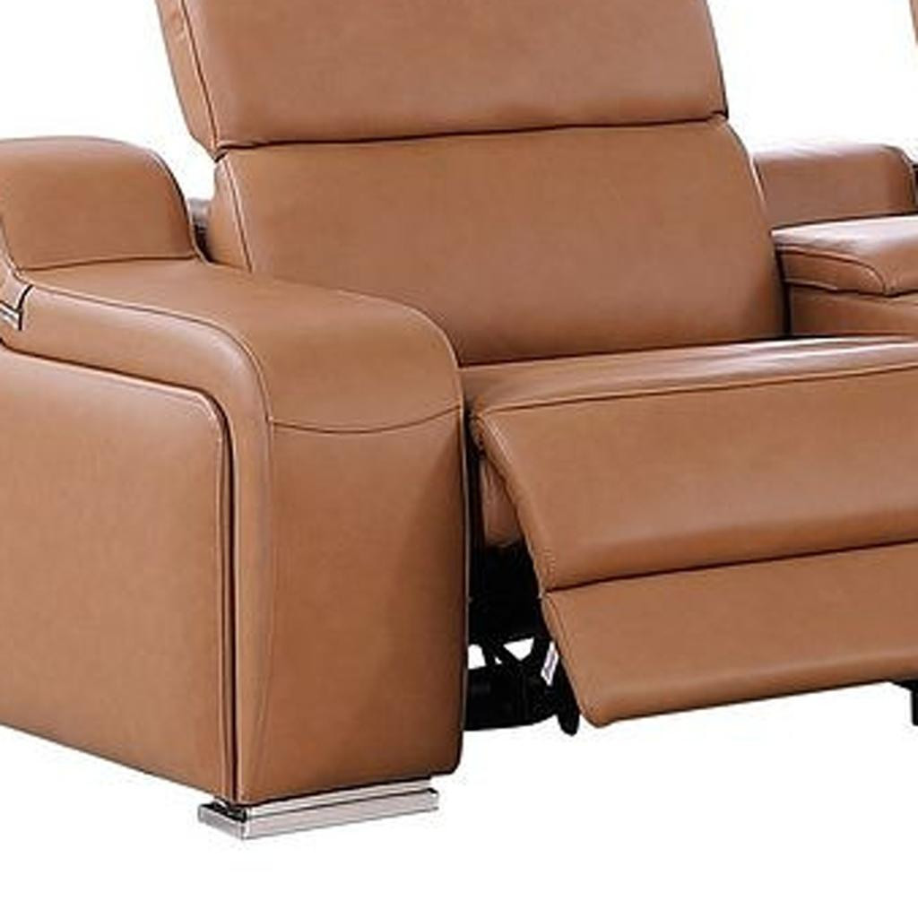 Step into a world of unparalleled seating comfort with our remarkable two piece chestnut leather five person seating set. The reclining sofa will transform your space into a cozy haven for leisurely activities, movie nights, or even quick power naps. Upholstered in supple and luxurious leather, this set has a rich and warm appeal. The presence of pocket spring seat construction helps distribute weight evenly, reducing pressure points. The inclusion of a loveseat into your mix allows a fashionable seating option in a compact design. 39-inch h x 129-inch w x 41-inch d.