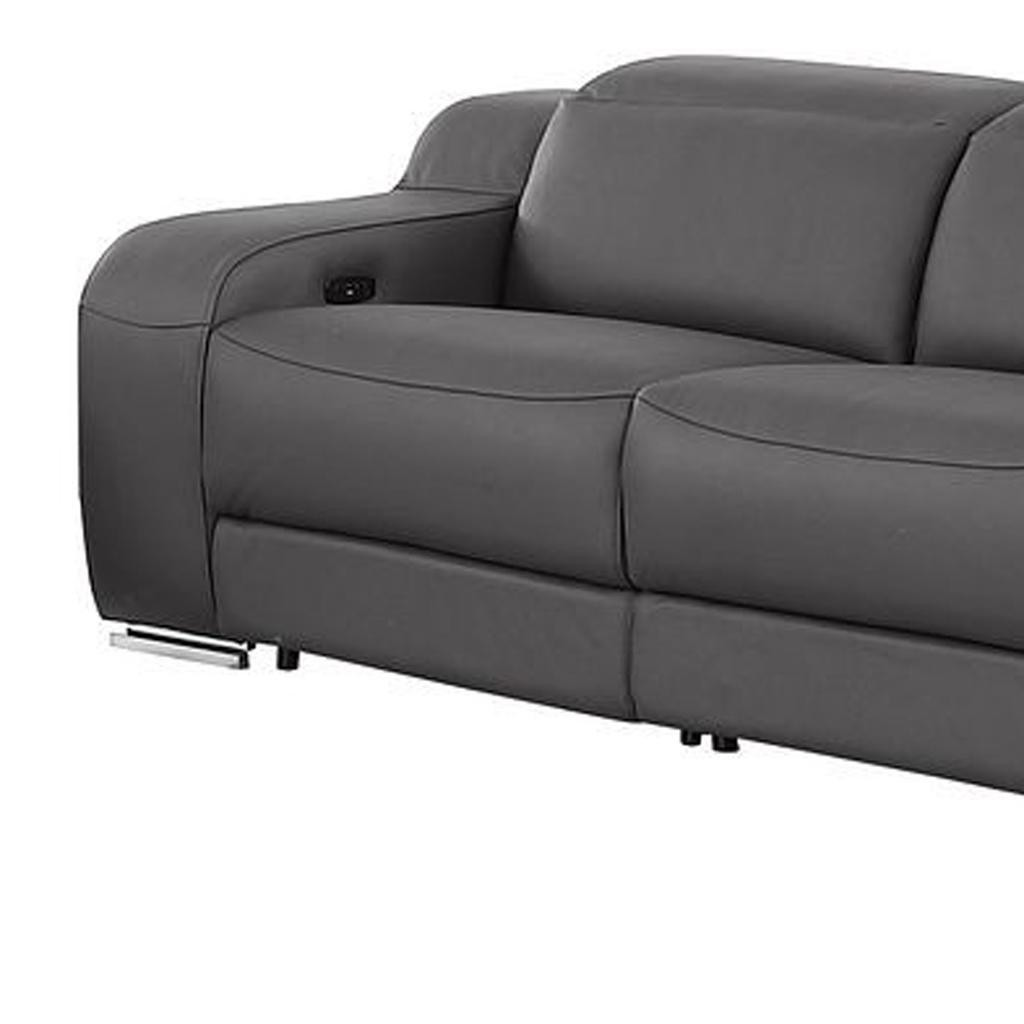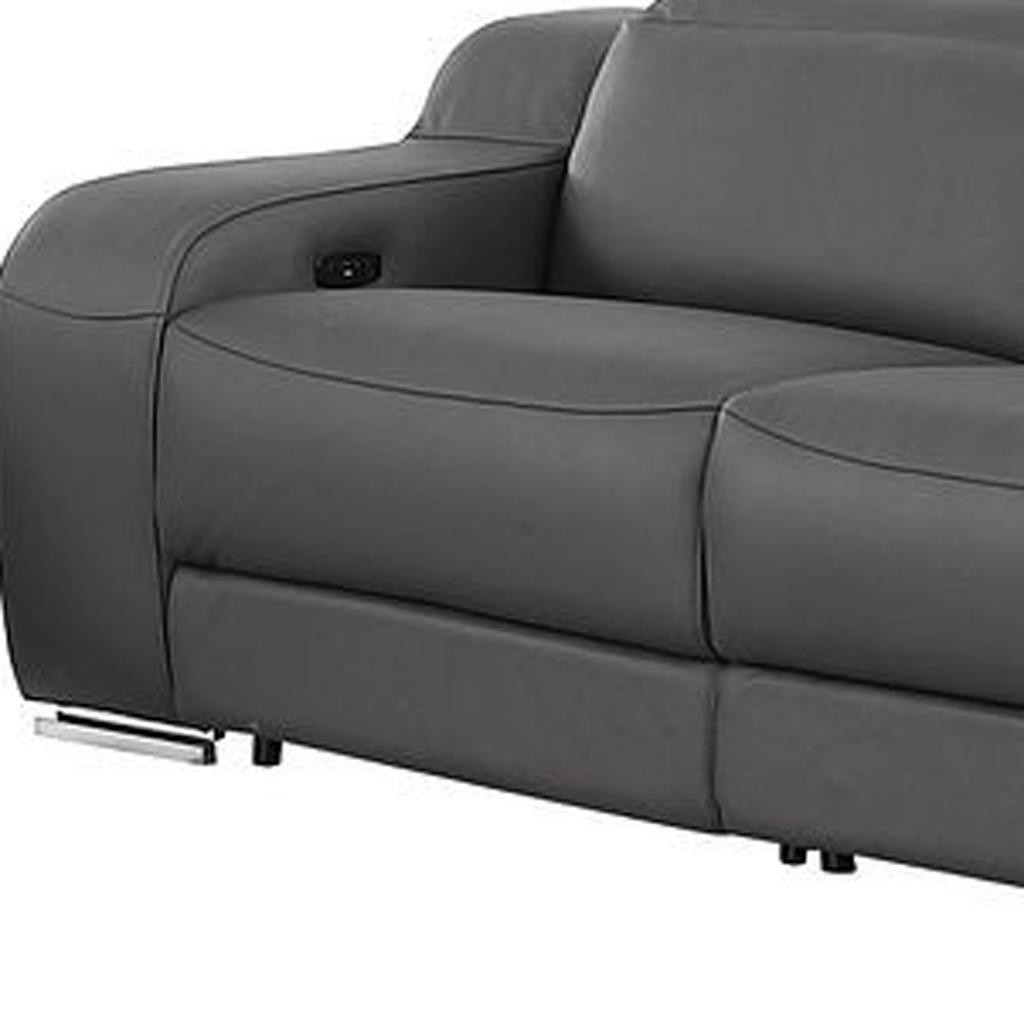 When it comes to indoor seating, this two piece dark gray leather five person seating set has everything you need to get set and ready to relax. The reclining sofa will transform your space into a cozy haven for leisurely activities, movie nights, or even quick power naps. Upholstered in supple and luxurious leather, this set has a rich and warm appeal. Pocket spring seat construction provides excellent comfort by offering a responsive and supportive seating experience. The inclusion of a loveseat into your mix allows a fashionable seating option in a compact design. Enjoy the added convenience and security of storage, providing a space to store everyday essentials within easy reach. 39.00-inch h x 129.00-inch w x 41.00-inch d.