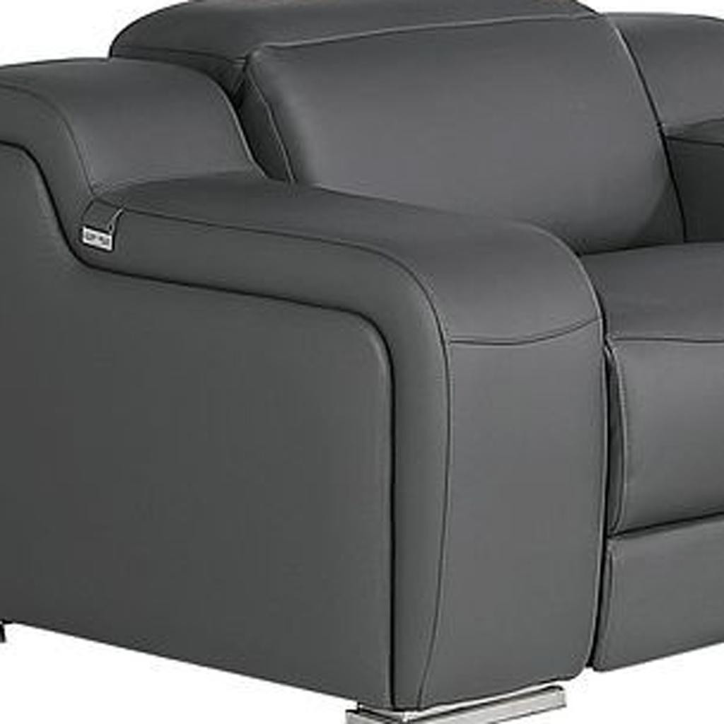 When it comes to indoor seating, this three piece dark gray leather six person seating set has everything you need to get set and ready to relax. The reclining sofa will transform your space into a cozy haven for leisurely activities, movie nights, or even quick power naps. Upholstered in supple and luxurious leather, this set has a rich and warm appeal. The presence of pocket spring seat construction helps distribute weight evenly, reducing pressure points. The inclusion of a loveseat into your mix allows a fashionable seating option in a compact design. 39.00-inch h x 129.00-inch w x 41.00-inch d.