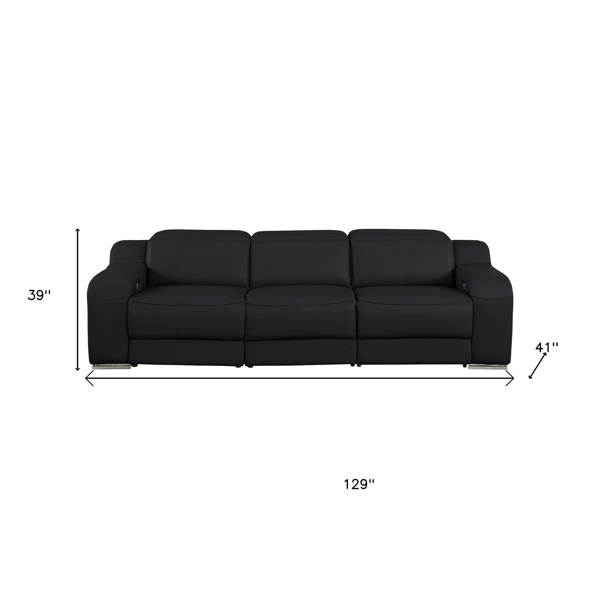 Step into a world of unparalleled seating comfort with our remarkable three piece black leather six person seating set. Prepare to enter the realm of ultimate relaxation with this reclining sofa that offers unparalleled comfort and luxurious lounging. Upholstered in supple and luxurious leather, this set has a rich and warm appeal. The presence of pocket spring seat construction helps distribute weight evenly, reducing pressure points. The inclusion of a loveseat into your mix allows a fashionable seating option in a compact design. 39.00-inch h x 129.00-inch w x 41.00-inch d.