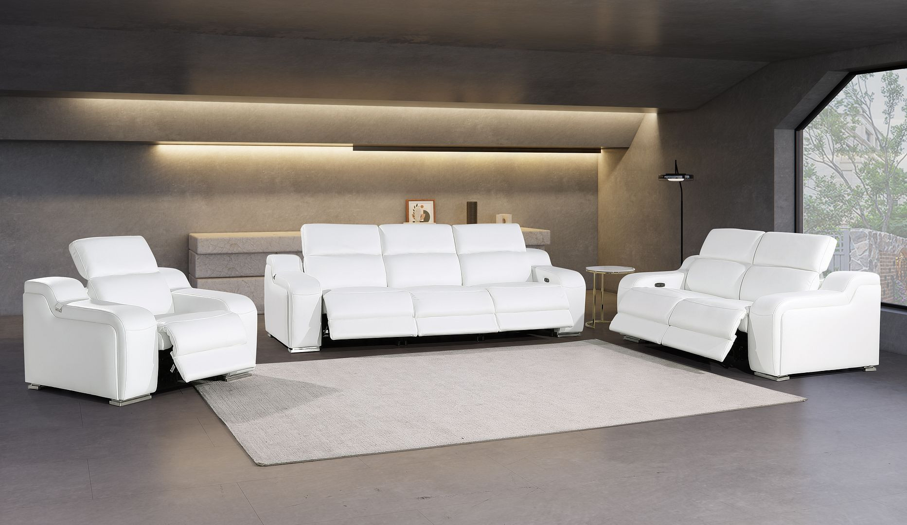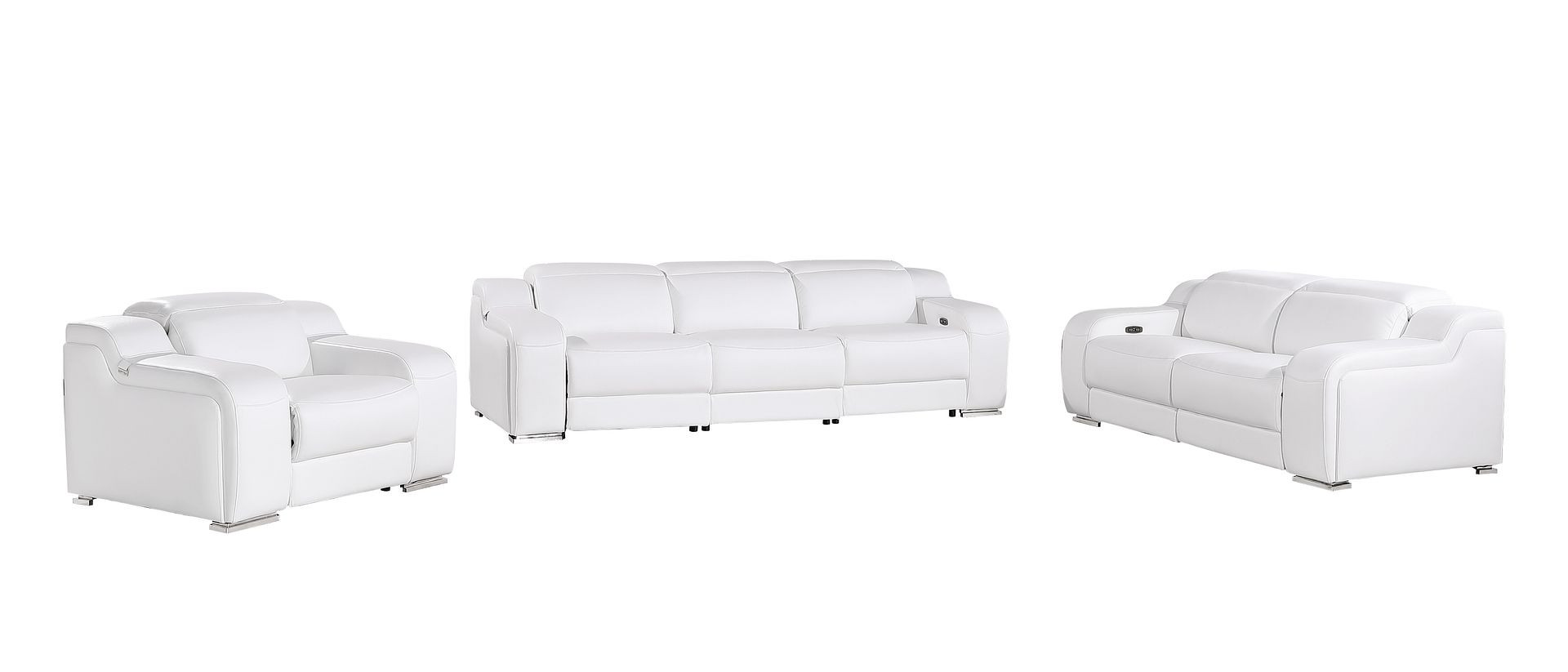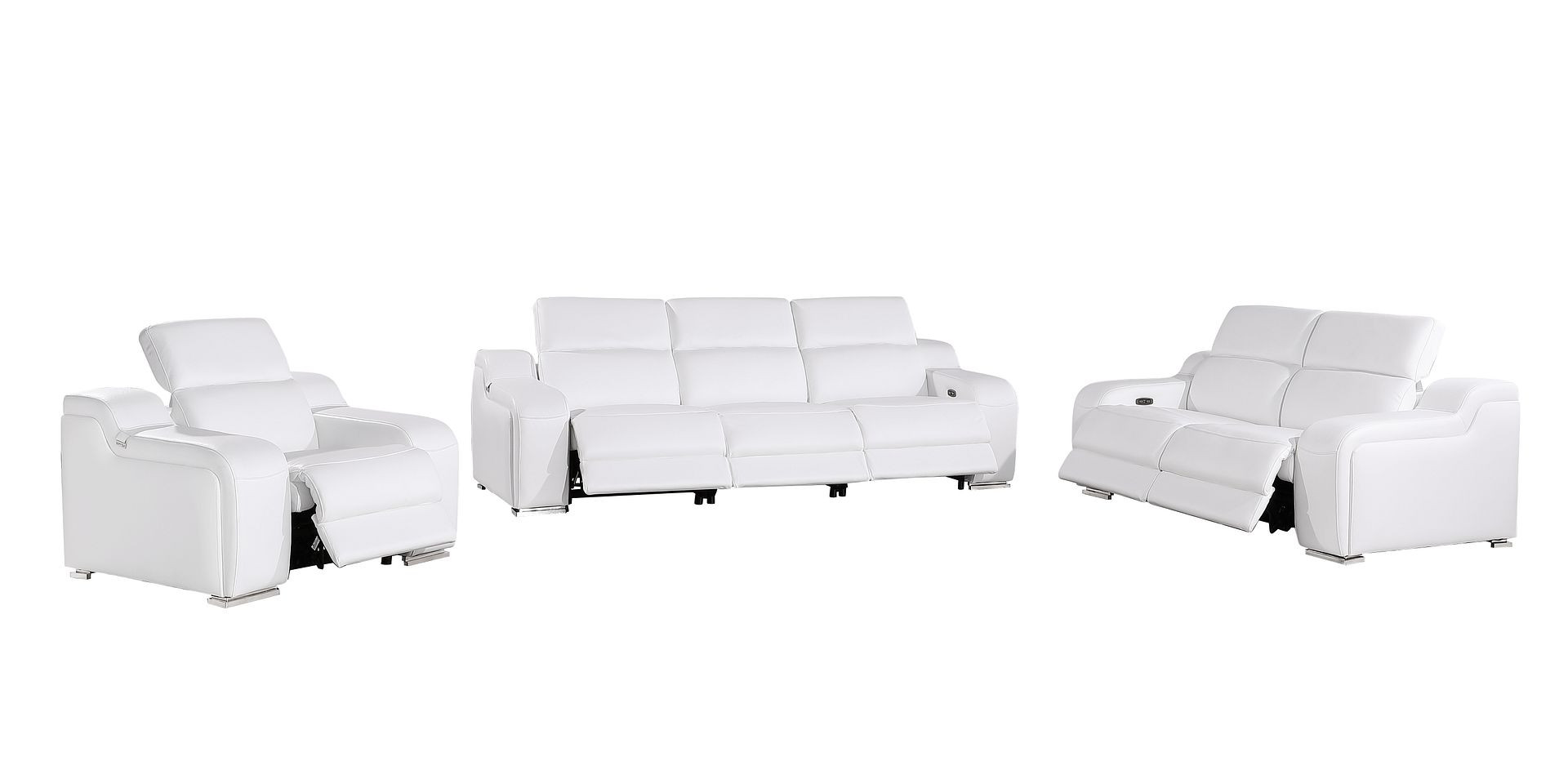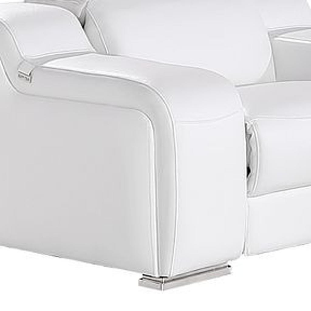 Step into a world of unparalleled seating comfort with our remarkable three piece white leather six person seating set. Prepare to enter the realm of ultimate relaxation with this reclining sofa that offers unparalleled comfort and luxurious lounging. Upholstered in supple and luxurious leather, this set has a rich and warm appeal. Pocket spring seat construction provides excellent comfort by offering a responsive and supportive seating experience. The inclusion of a loveseat into your mix allows a fashionable seating option in a compact design. 39.00-inch h x 103.00-inch w x 41.00-inch d.