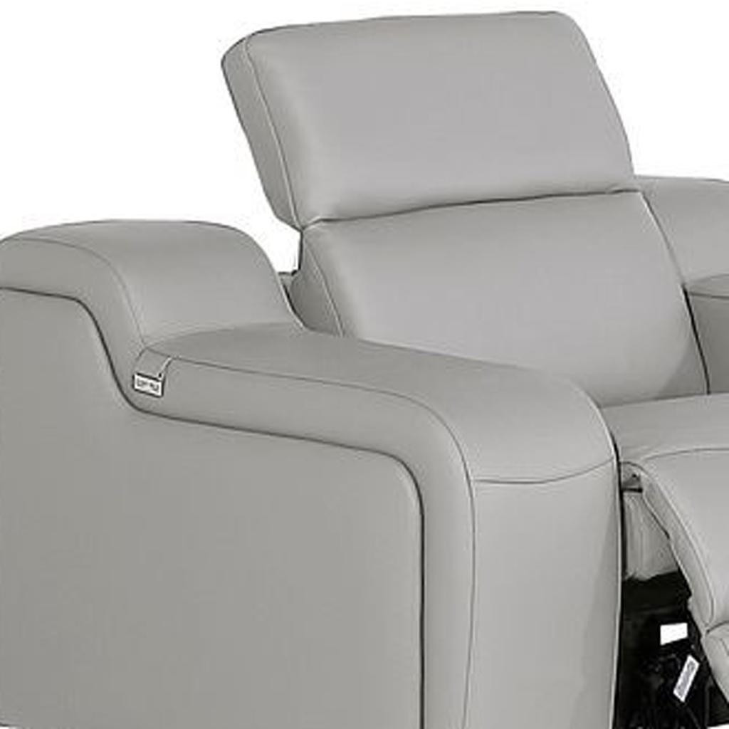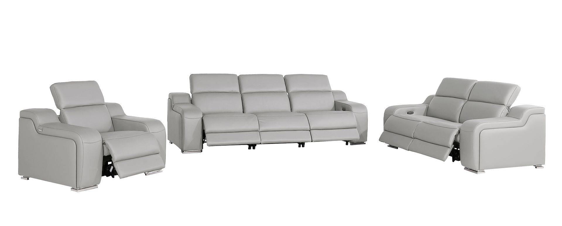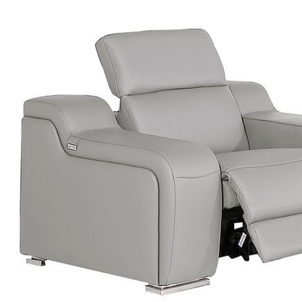 When it comes to indoor seating, this three piece light gray leather six person seating set has everything you need to get set and ready to relax. Prepare to enter the realm of ultimate relaxation with this reclining sofa that offers unparalleled comfort and luxurious lounging. Upholstered in supple and luxurious leather, this set has a rich and warm appeal. Pocket spring seat construction provides excellent comfort by offering a responsive and supportive seating experience. The inclusion of a loveseat into your mix allows a fashionable seating option in a compact design. 39.00-inch h x 103.00-inch w x 41.00-inch d.