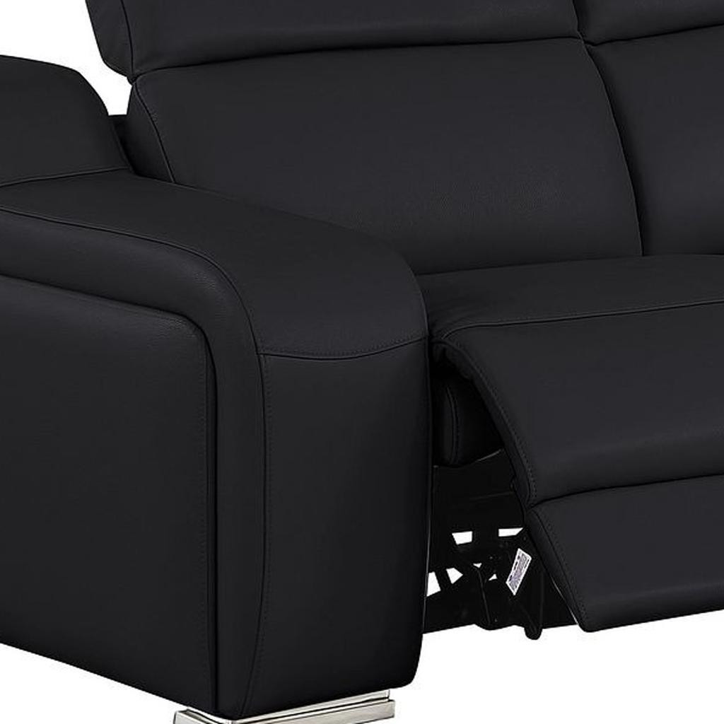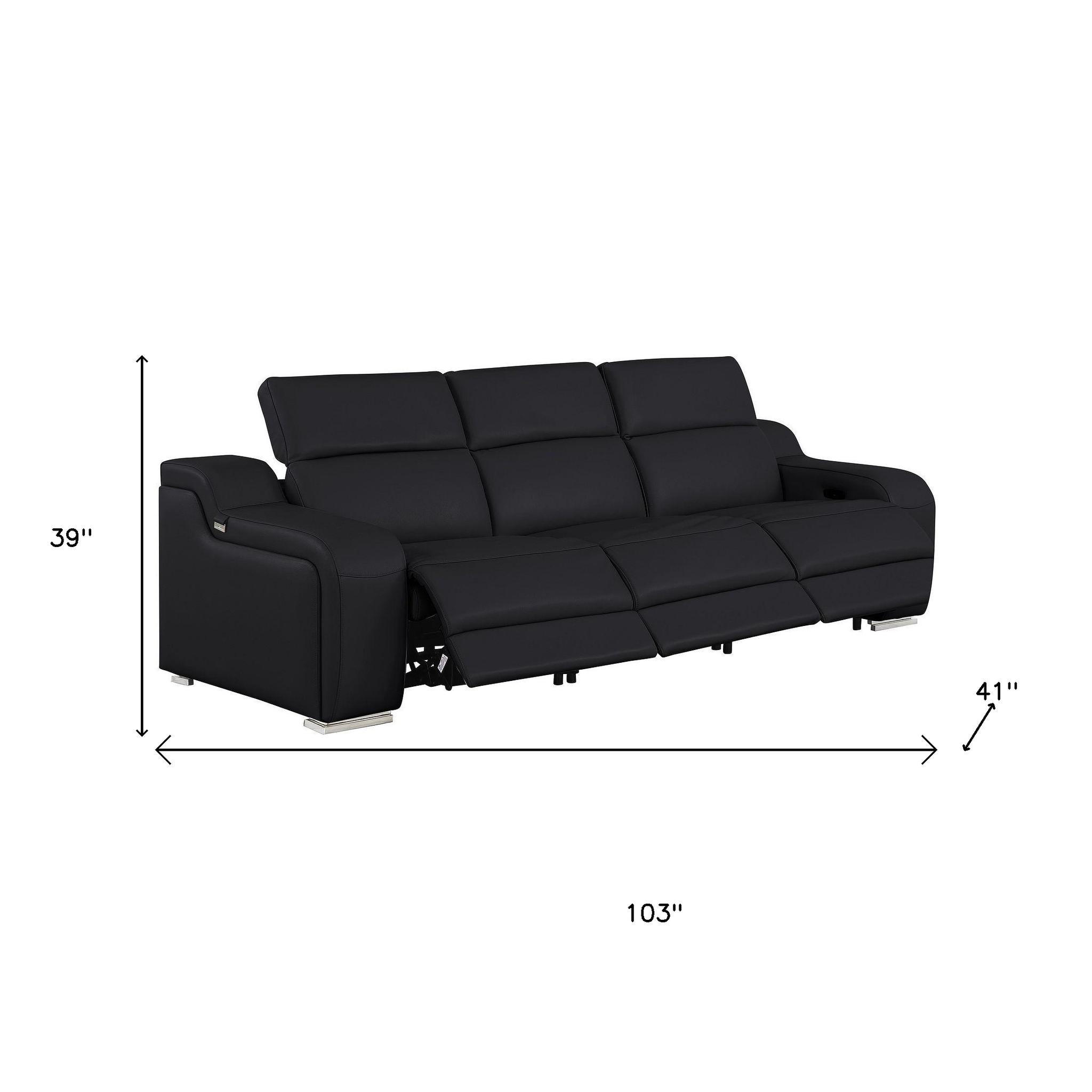 When it comes to indoor seating, this three piece black leather six person seating set has everything you need to get set and ready to relax. The reclining sofa will transform your space into a cozy haven for leisurely activities, movie nights, or even quick power naps. Upholstered in supple and luxurious leather, this set has a rich and warm appeal. Pocket spring seat construction provides excellent comfort by offering a responsive and supportive seating experience. The inclusion of a loveseat into your mix allows a fashionable seating option in a compact design. 39.00-inch h x 103.00-inch w x 41.00-inch d.