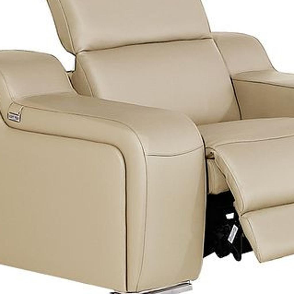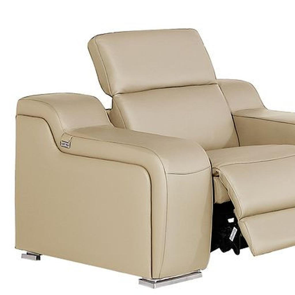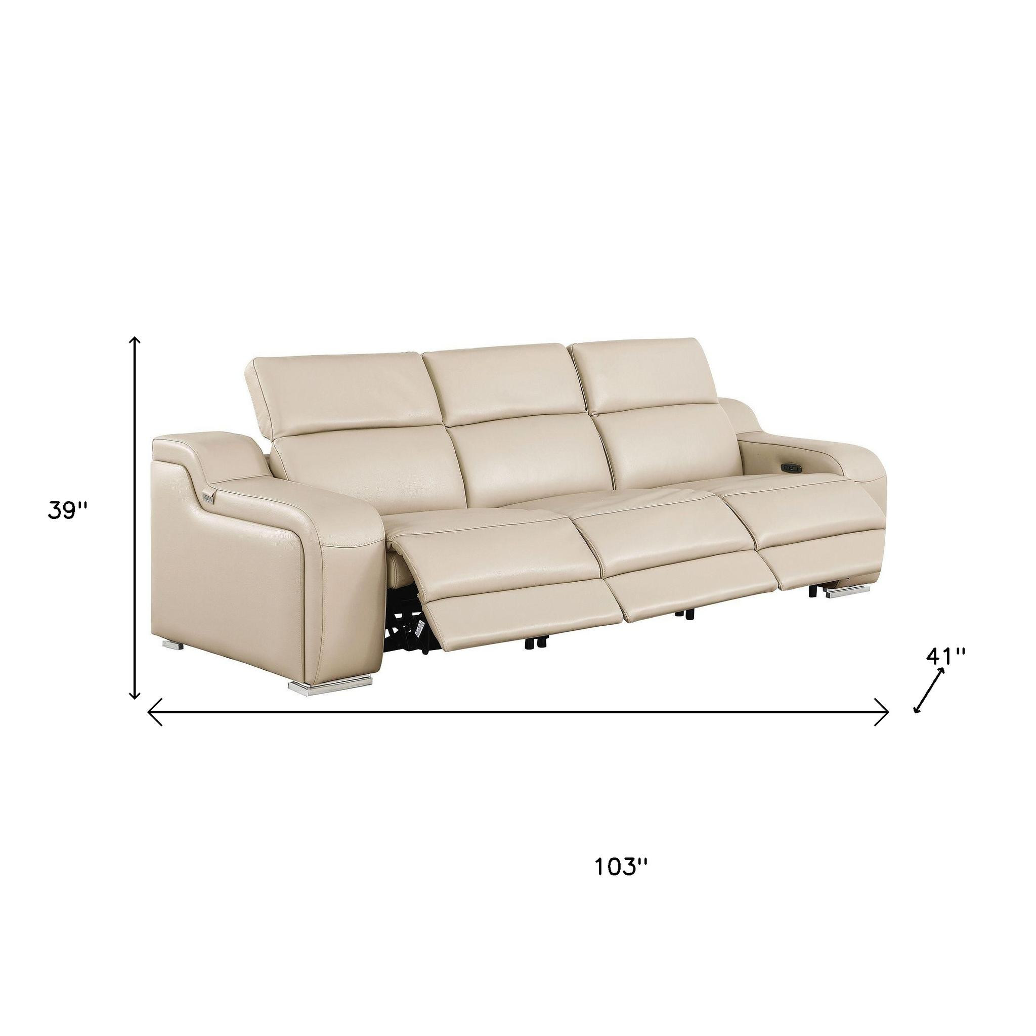 Step into a world of unparalleled seating comfort with our remarkable three piece beige leather six person seating set. The reclining sofa will transform your space into a cozy haven for leisurely activities, movie nights, or even quick power naps. Upholstered in supple and luxurious leather, this set has a rich and warm appeal. Pocket spring seat construction provides excellent comfort by offering a responsive and supportive seating experience. The inclusion of a loveseat into your mix allows a fashionable seating option in a compact design. 39-inch h x 103-inch w x 41-inch d.
