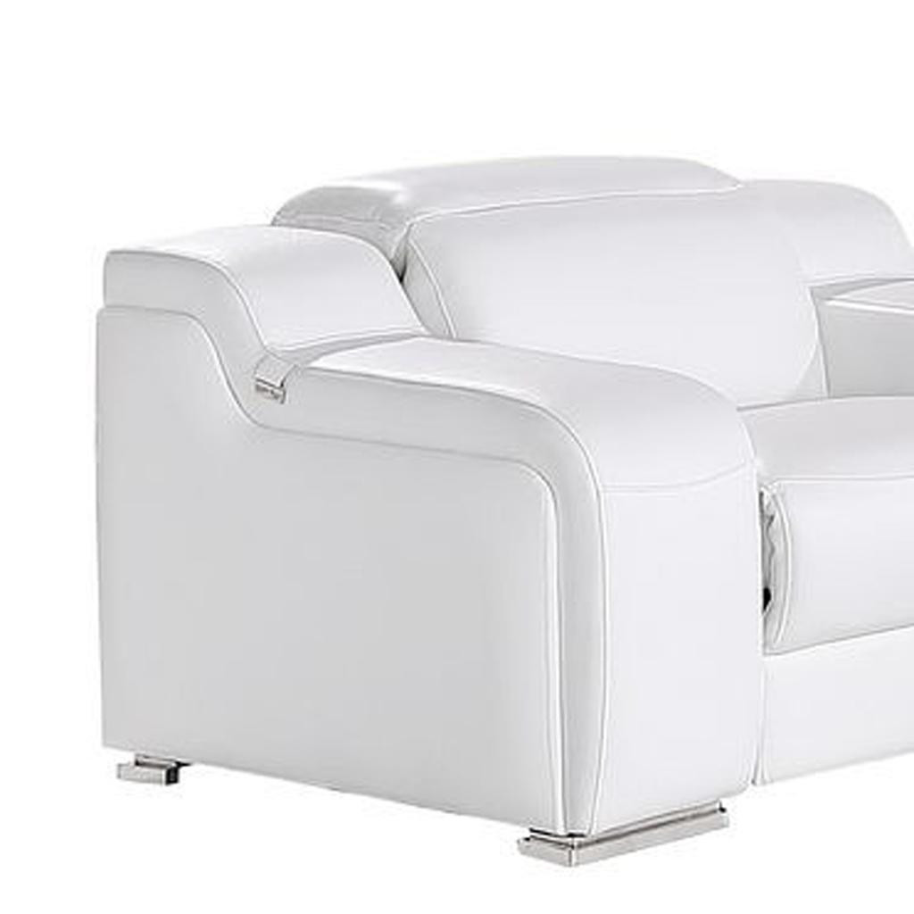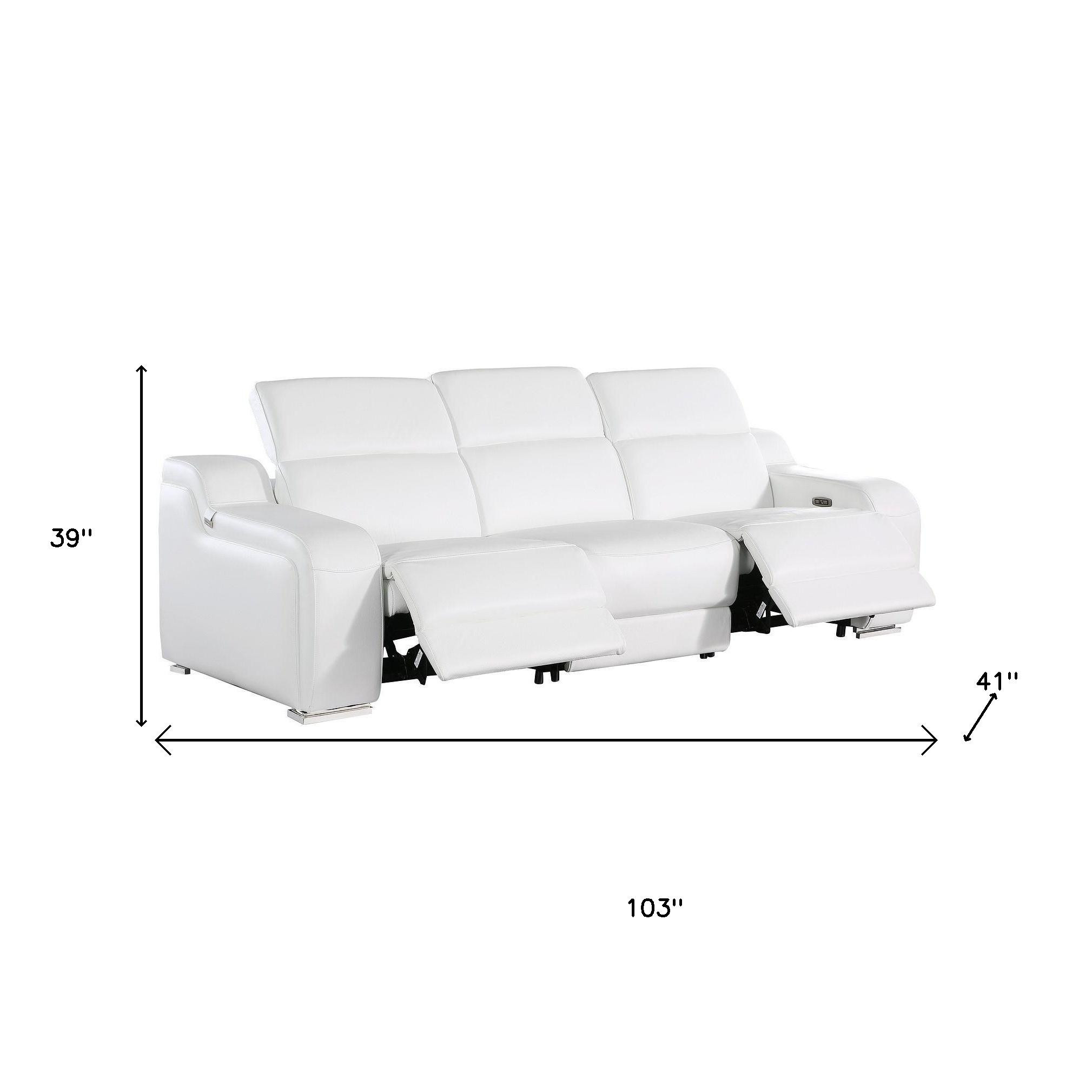 When it comes to indoor seating, this three piece white leather six person seating set has everything you need to get set and ready to relax. Prepare to enter the realm of ultimate relaxation with this reclining sofa that offers unparalleled comfort and luxurious lounging. Upholstered in supple and luxurious leather, this set has a rich and warm appeal. Pocket spring seat construction provides excellent comfort by offering a responsive and supportive seating experience. The inclusion of a loveseat into your mix allows a fashionable seating option in a compact design. Enjoy the added convenience and security of storage, providing a space to store everyday essentials within easy reach. 39.00-inch h x 103.00-inch w x 41.00-inch d.