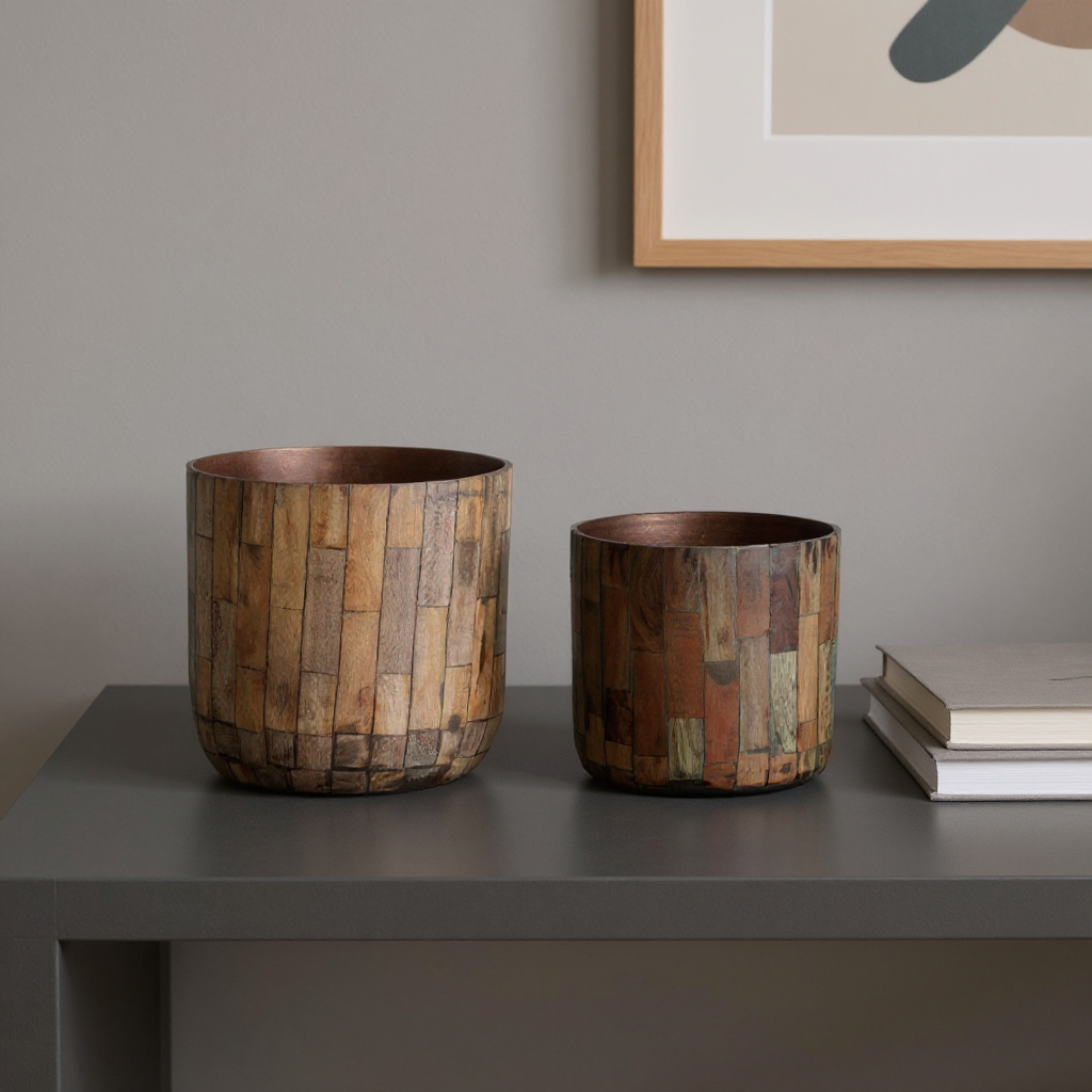 wood ounce round pot planters, ounce round pot planters, round pot planters, wood ounce round pot, brown wood ounce round pot |