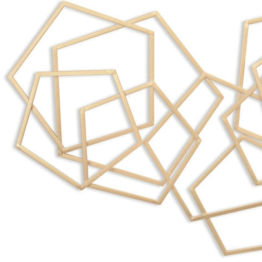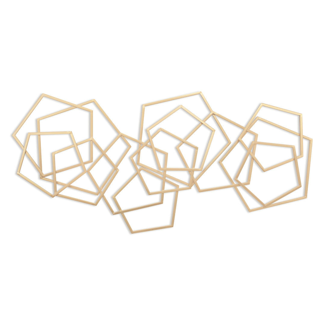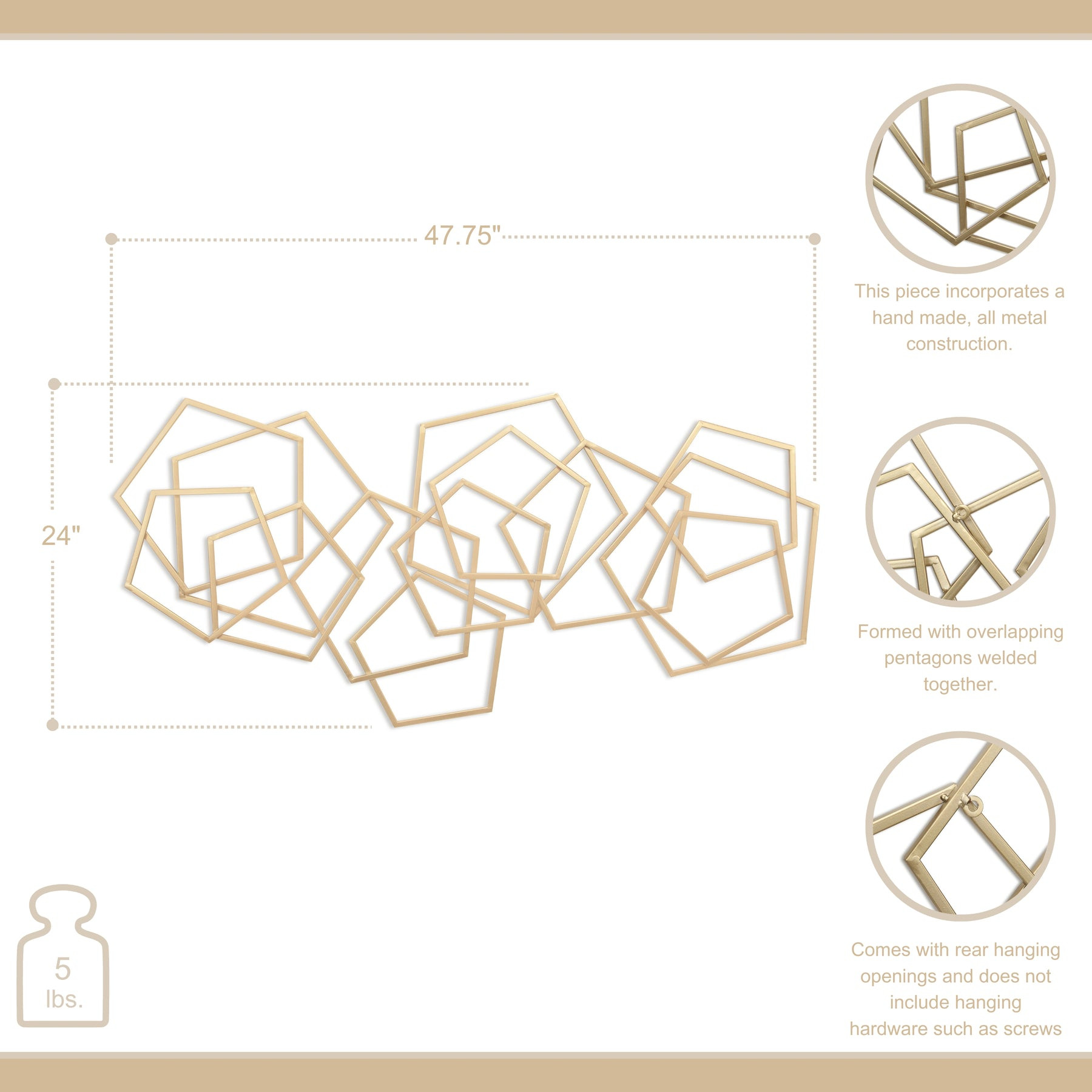 Handmade with care, this piece brings some authenticity to your space. Crafted from durable metal, this modern hanging dimensional sculpture adds a unique touch to your decor. This hand crafted piece features a modern and intricate overlapping geometric design that showcases the artisan's skill and attention to detail, ensuring that each piece is truly one-of-a-kind. Its horizontal orientation allows for versatile placement on any wall, making it an eye-catching focal point for your living area or office. Elevate your home with this stunning artwork that transforms any wall from a blank canvas into a statement of creativity. 24.00-inch h x 47.75-inch w x 1.50-inch d.