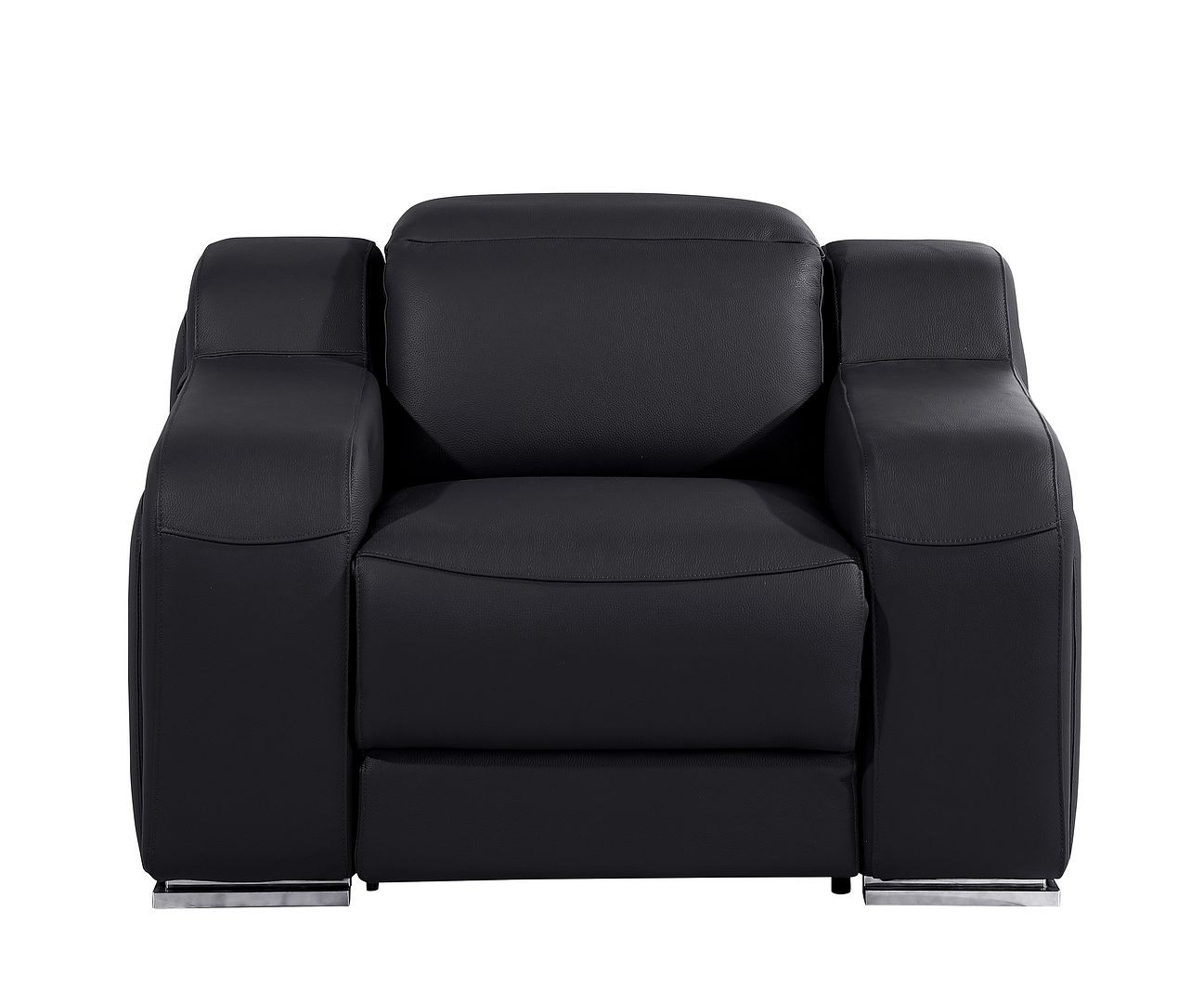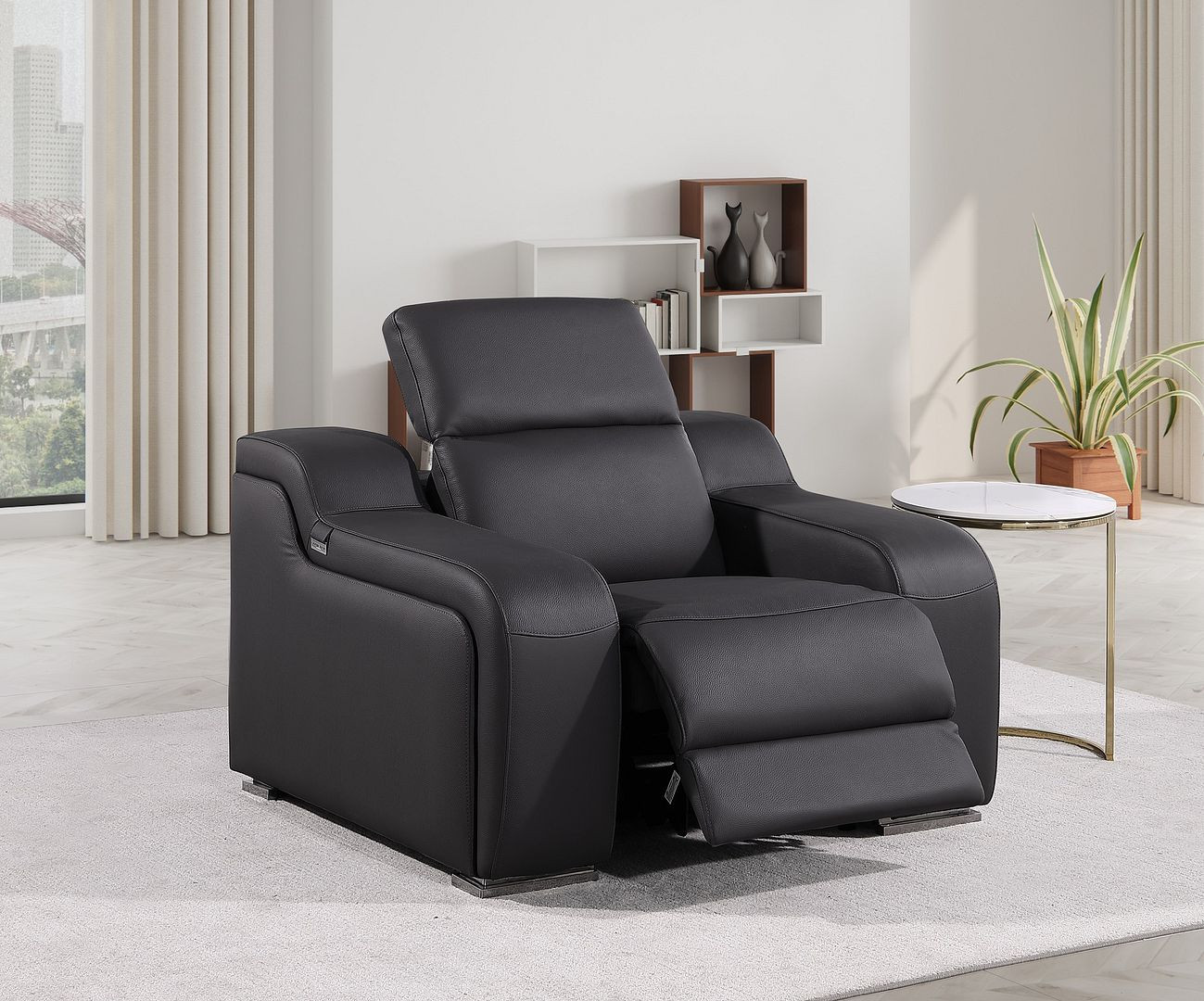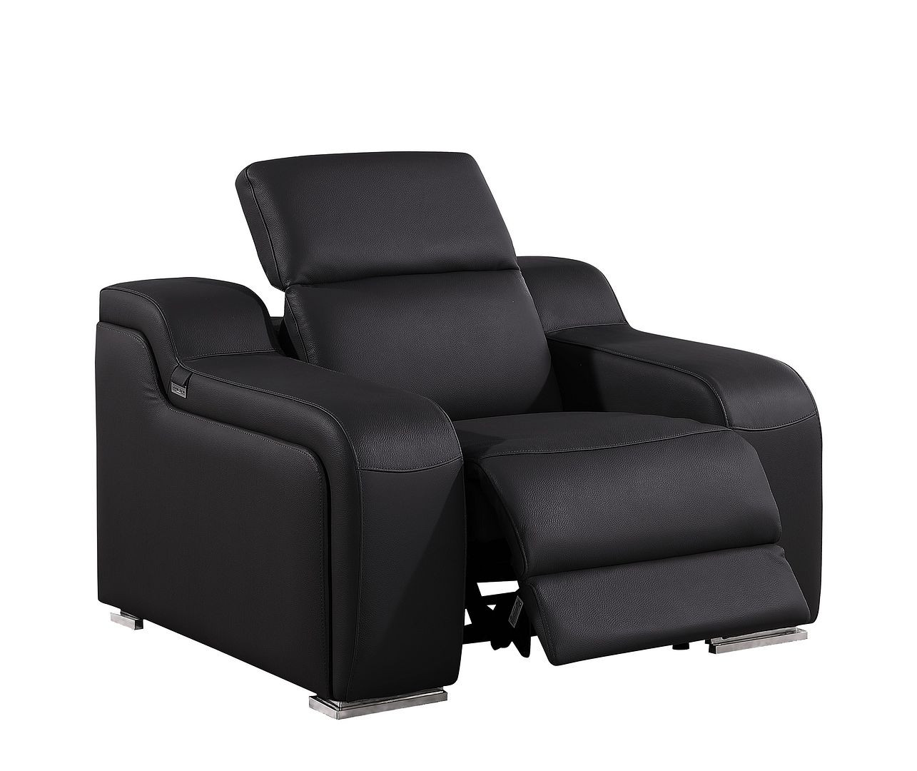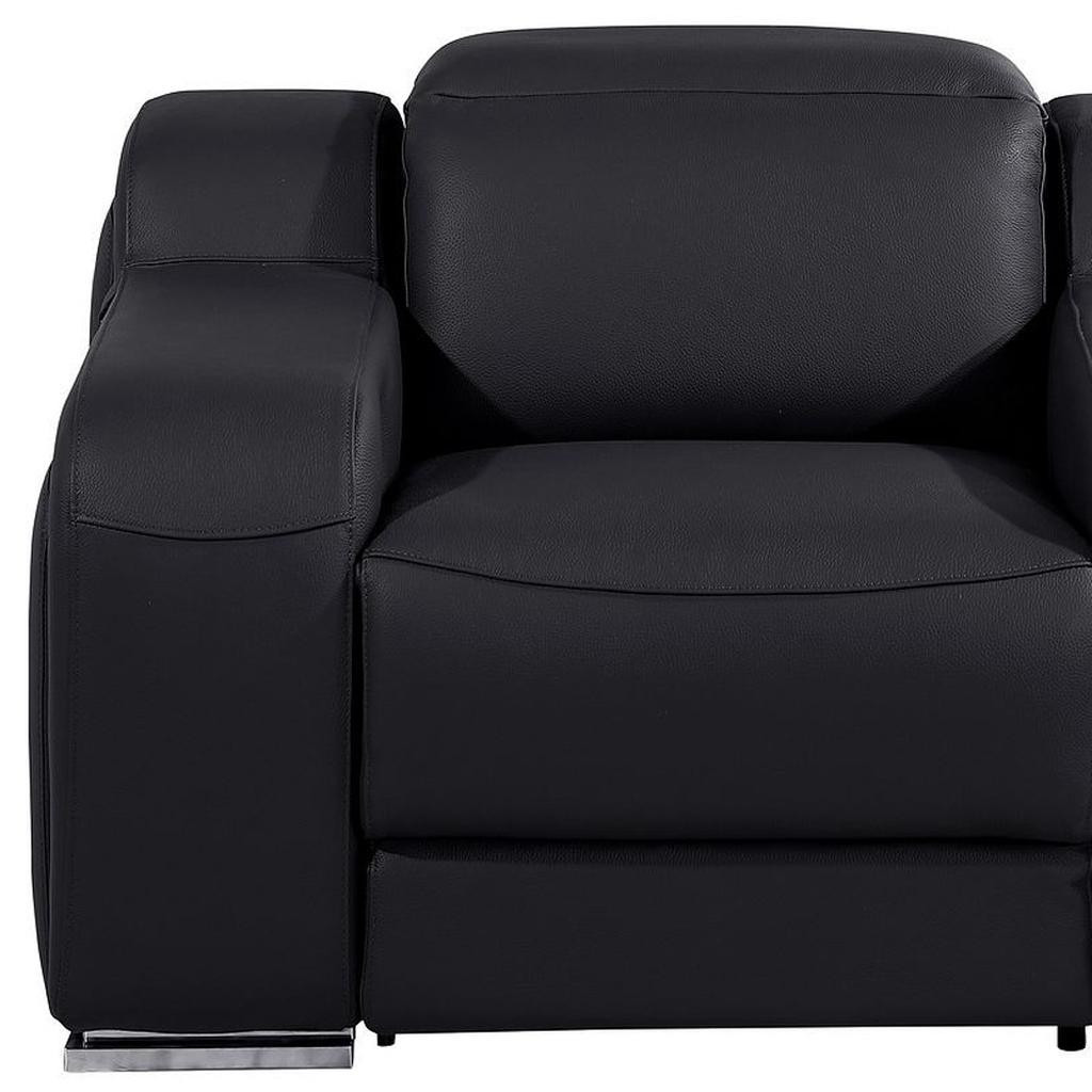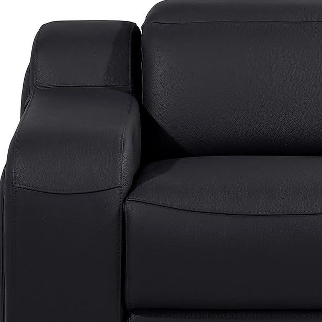 If you need a great place to sit back and relax at the end of a long day, this 41-inch black Italian leather wall hugger recliner with USB is what you need. Designer grade Black Italian leather gives this reclining chair a level of class and comfort to make your seating experience exceptional every day. The power push button mechanism will allow you to smoothly adjust to your most comfortable position. A space-saving option, this wall hugger recliner can be installed in close proximity to the wall because it requires minimal clearance. Whether you are starting your day, ending your day, or sneaking in a cat nap in between, this chair is a welcome addition to your space and self-care routine. Take relaxation to the next level with this comfy reclining chair. 42-inch h x 41-inch w x 41-inch d.