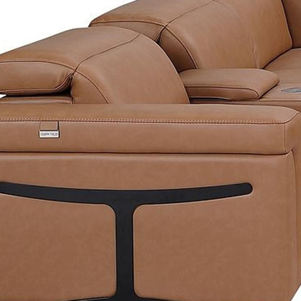 chestnut italian leather power reclining, italian leather power reclining shaped, leather power reclining shaped piece, shaped piece corner sectional console, reclining shaped piece corner sectional |